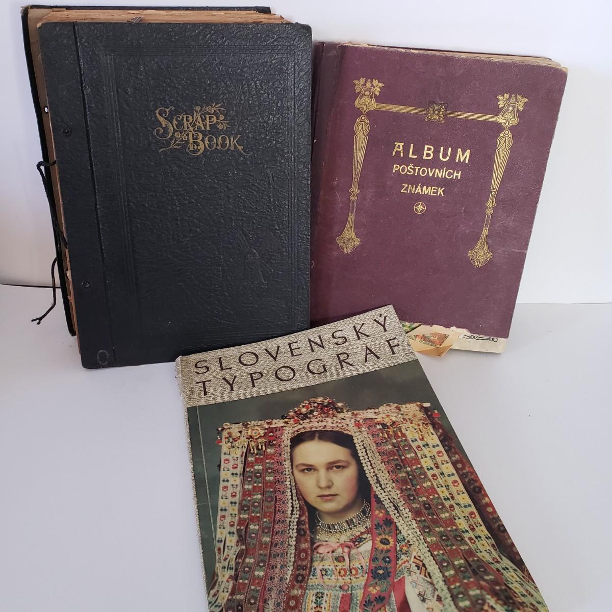 LOT 180Z: Vintage Stamp Album, Slovensky Typograf Art Book & Airplane Scrap Book