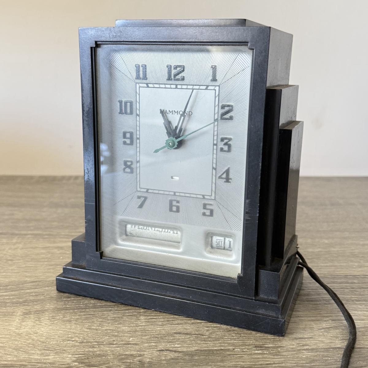 LOT 189K: Vintage Art Deco Hammond Gregory Sky Scraper Electric Desk Calendar Clock