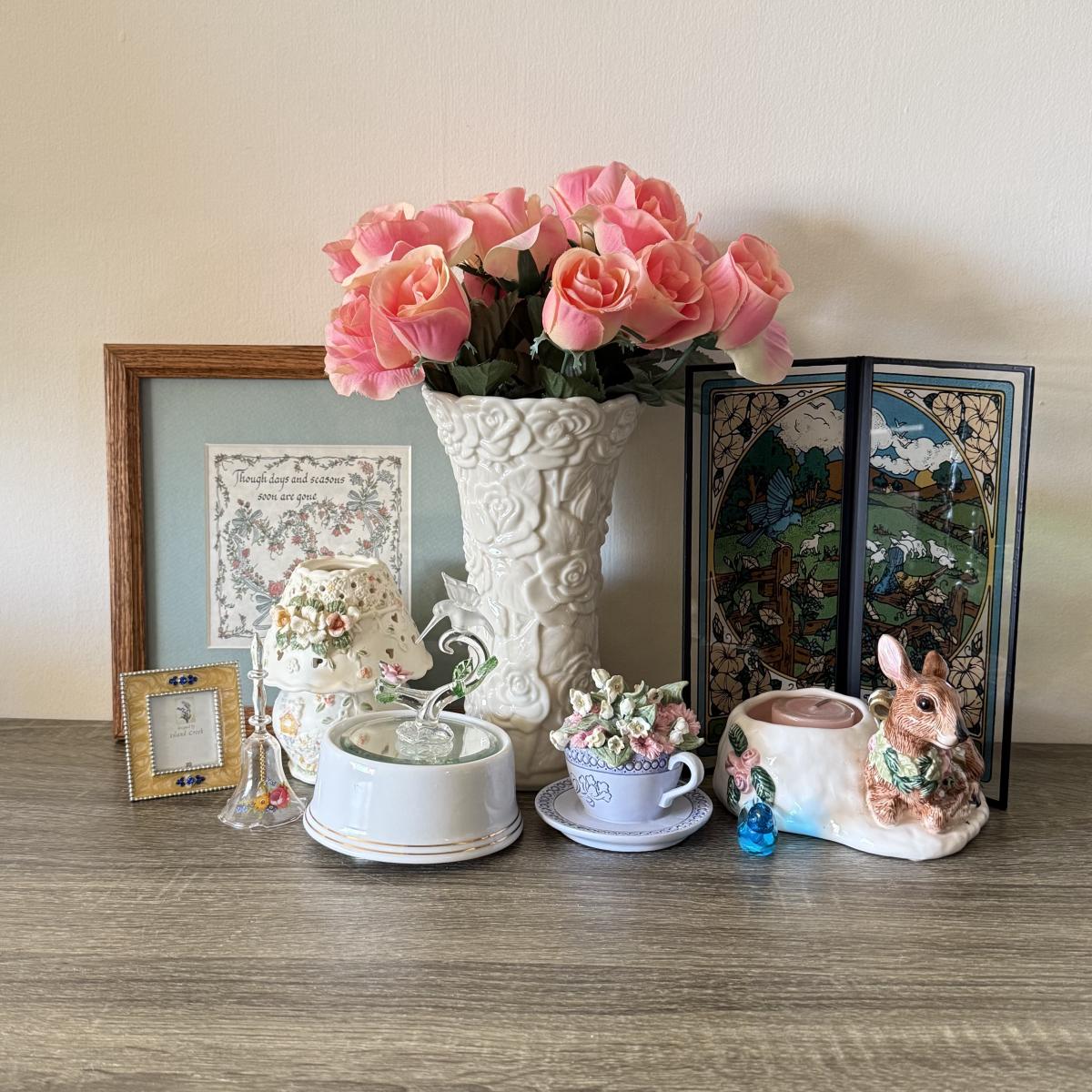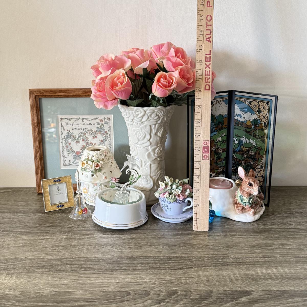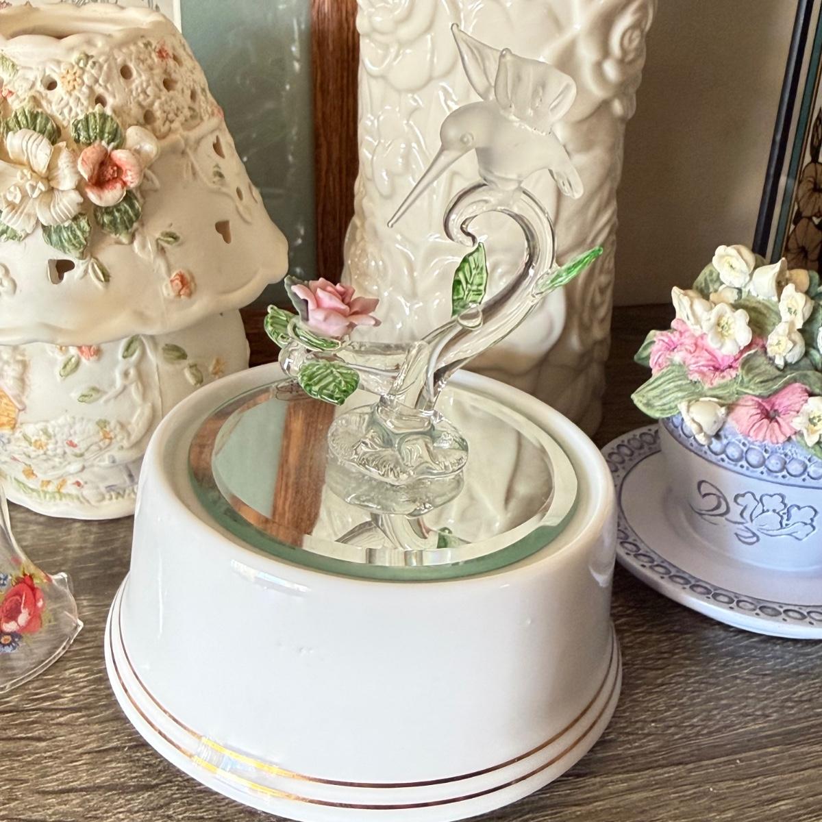 LOT 196H: Lenox Rose Vase, 1978 Yorkraft Robert Browning Quote Stained Glass, Musical Glass Hummingbird & More