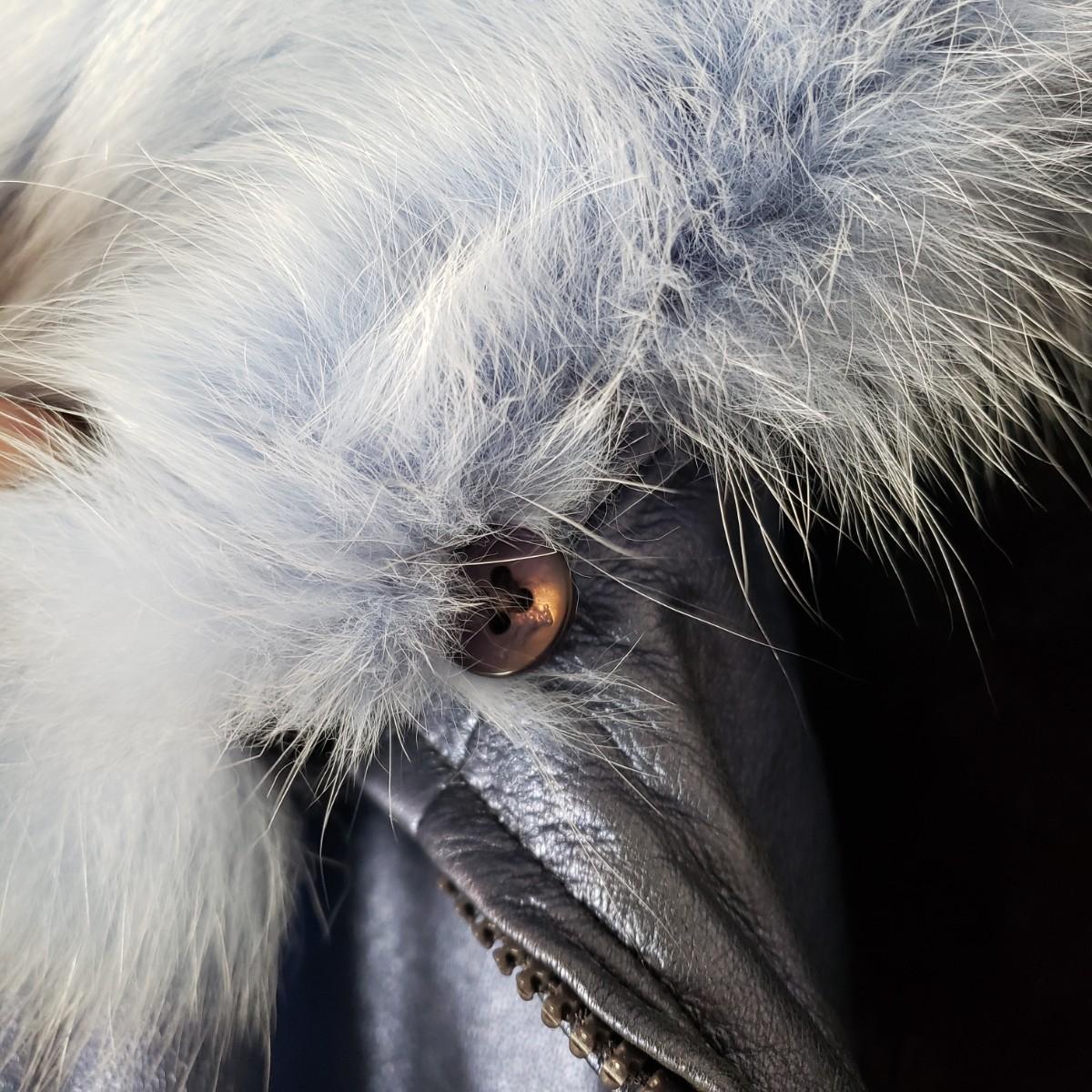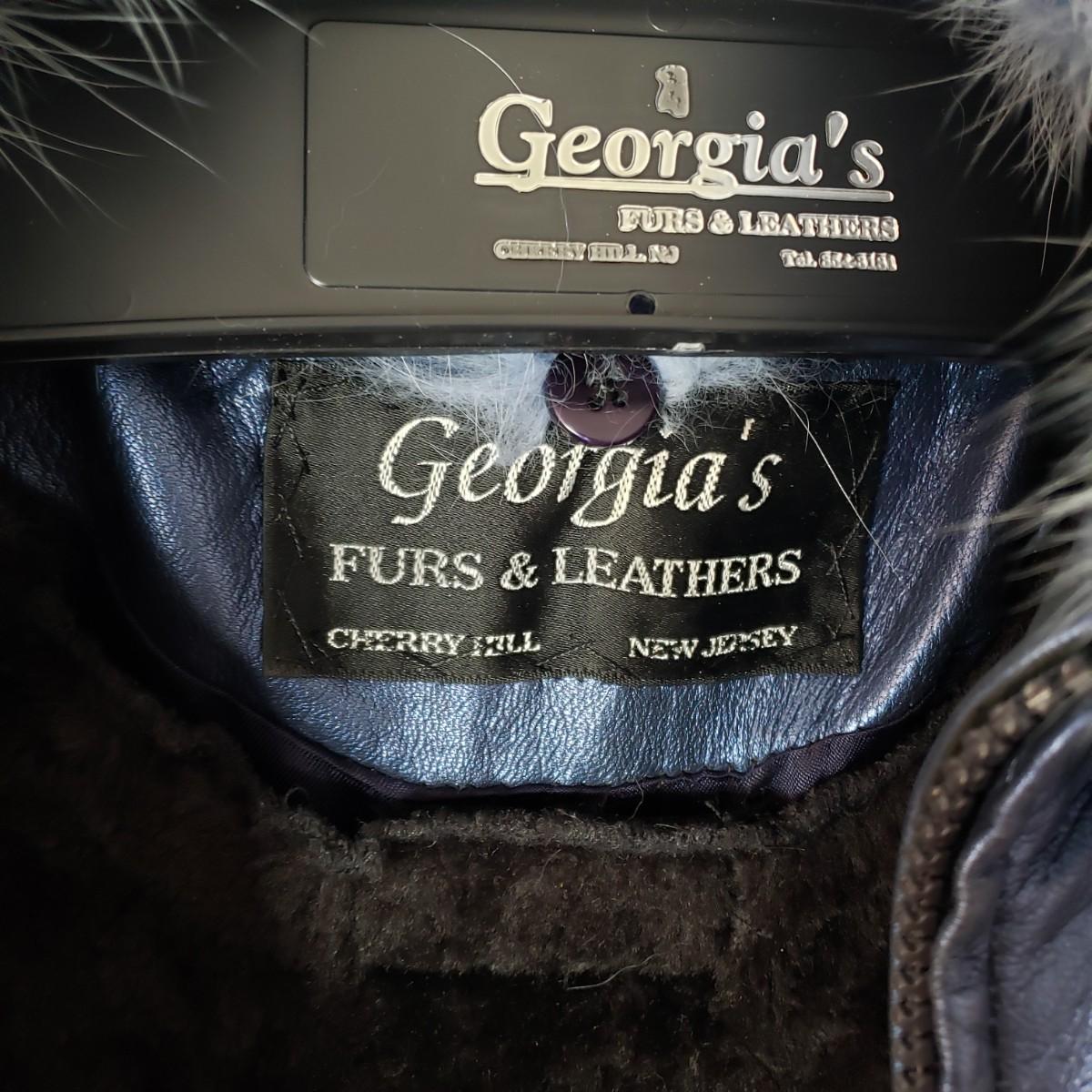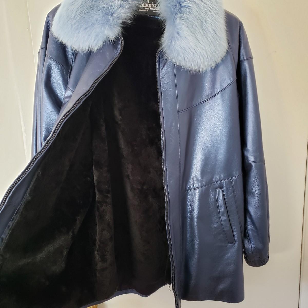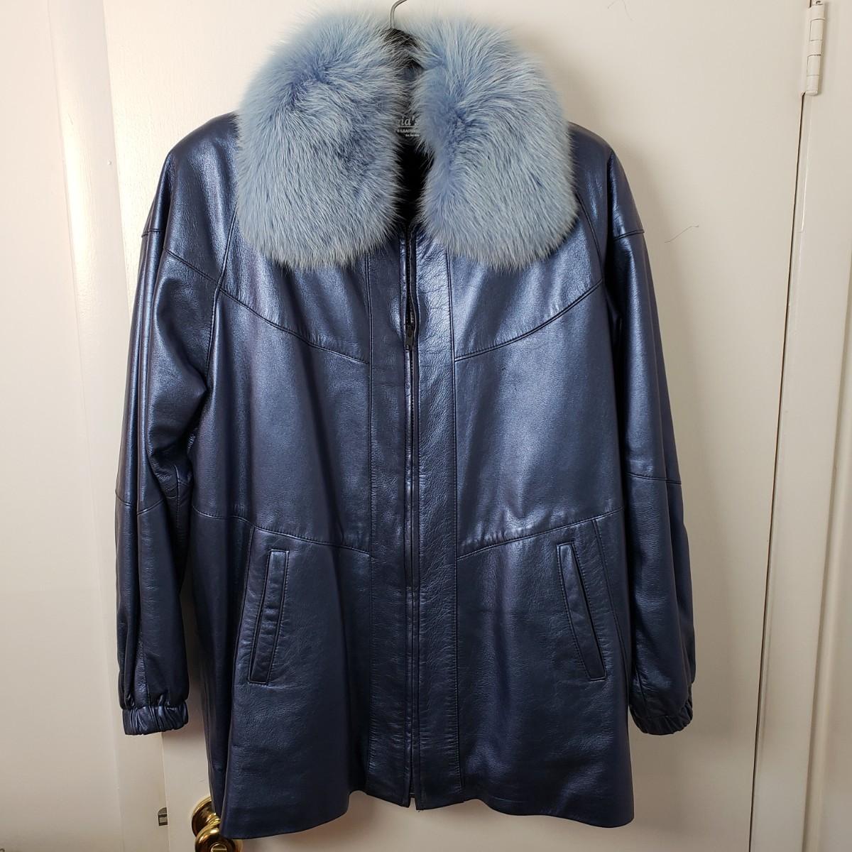 LOT 206Y: Blue Leather Fur Collar Jacket