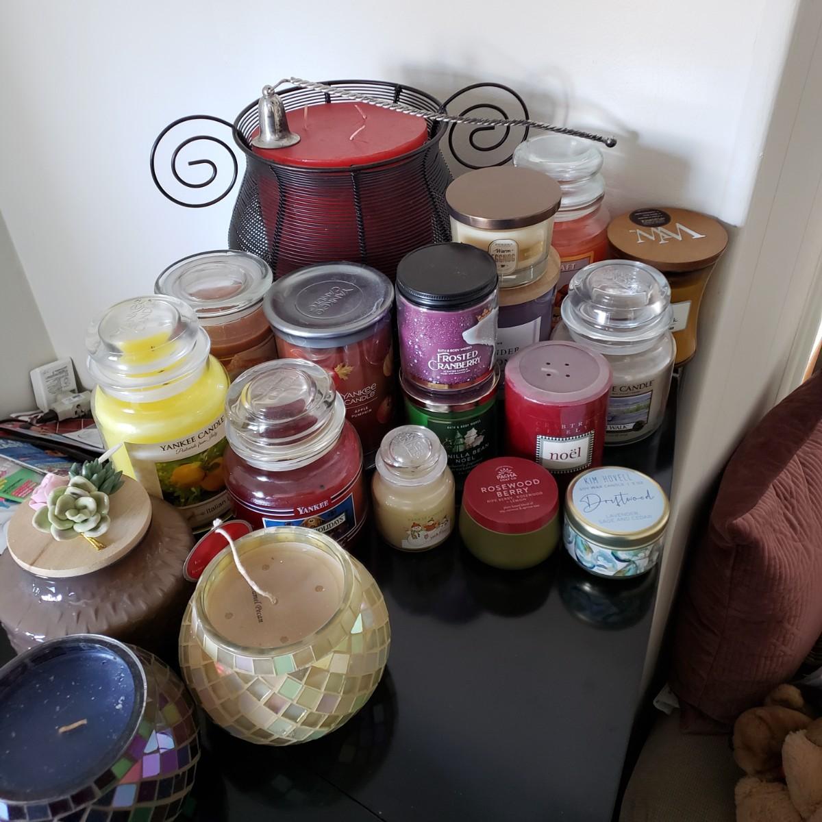 LOT 208F: Large Assortment of Candles-Yankee Candle, Bath & Body Works, Wood Wick & More