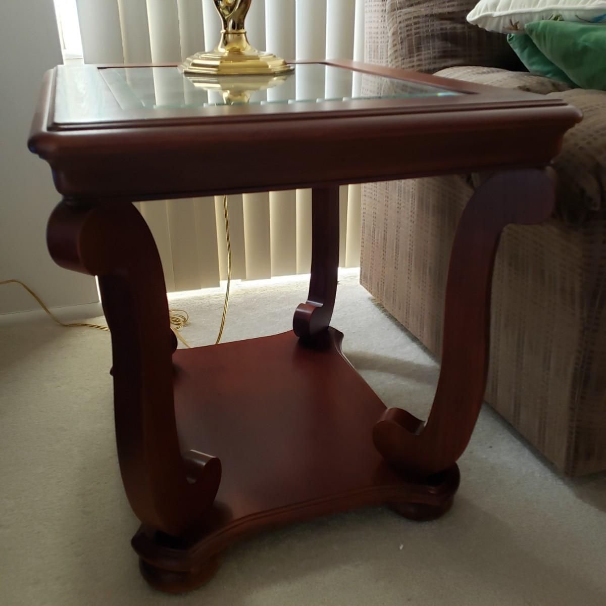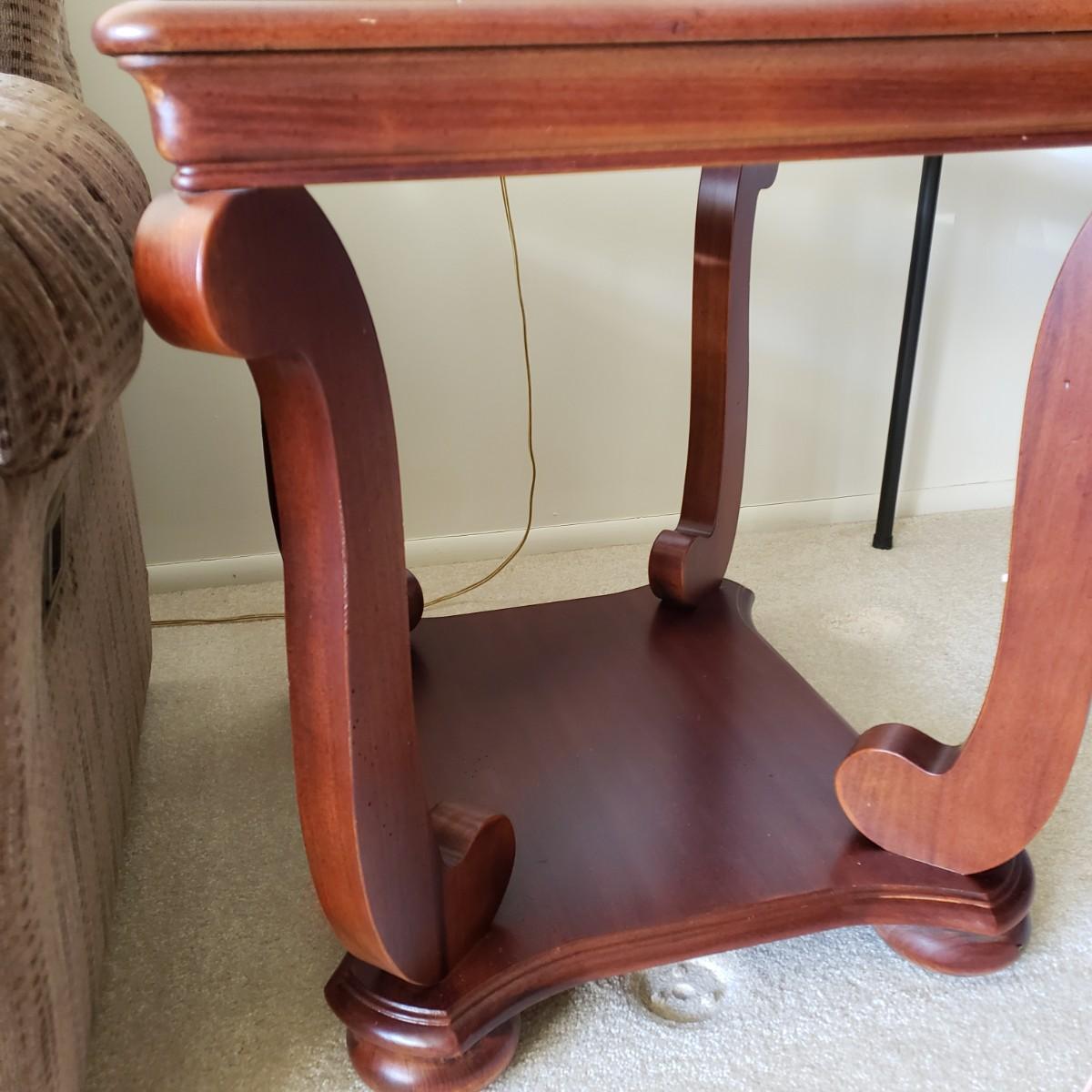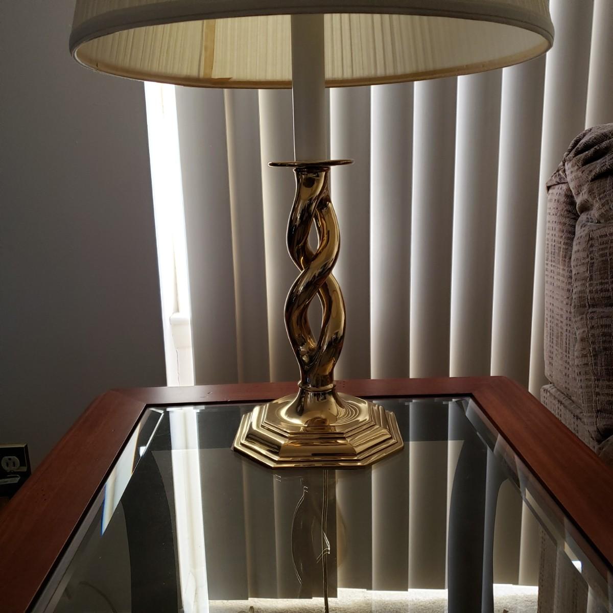 LOT 211L: Pair of Matching End Tables & Brass Lamps