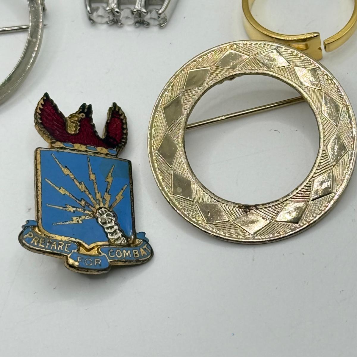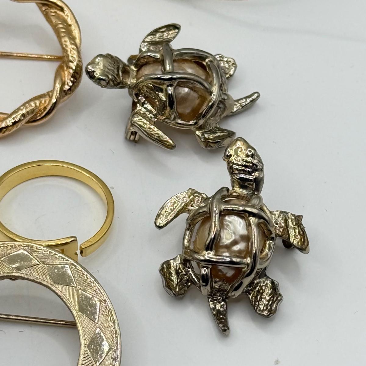 LOT 215J: Pins, Brooches, Rings: Hallmark Cat Witch Halloween Pin, Trifari Pin, Turtle Scatter Pins & More