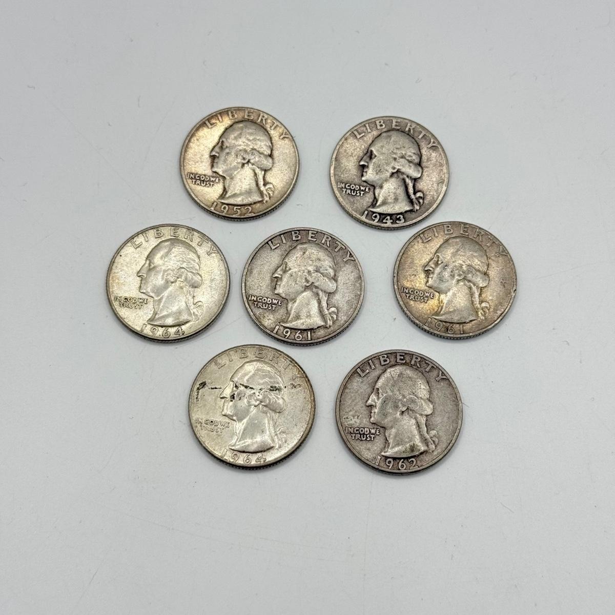 LOT 218C: 90% Silver Quarters US 25 Cent Coins (43.38g)