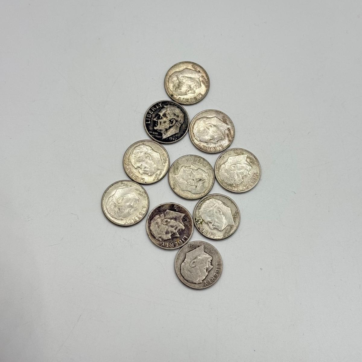 LOT 223C: 90% Silver Dimes US 10 Cent Coins (24.86g)