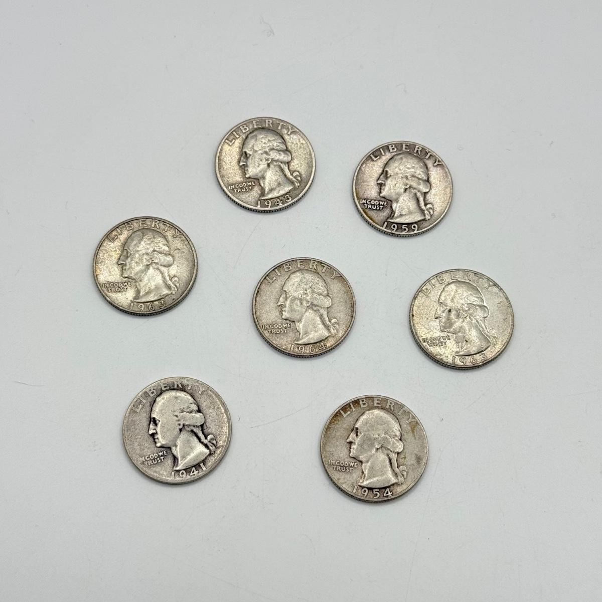 LOT 225C: 90% Silver Quarters US 25 Cent Coins (43.44g)