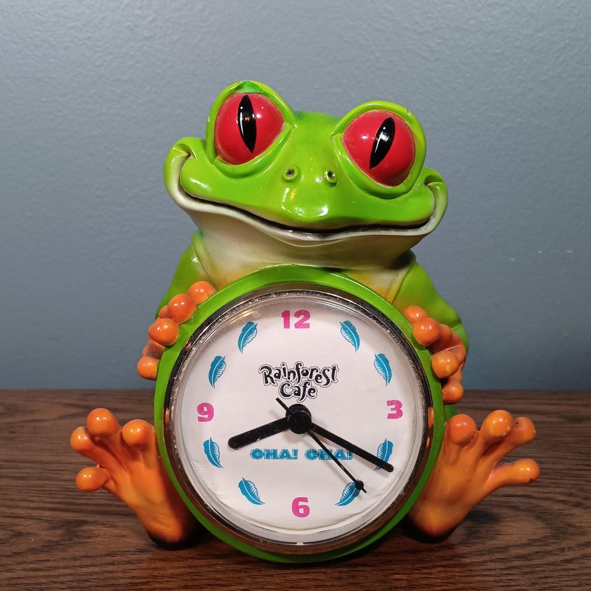 The Rainforest Cafe Clock has a small chip above one eye.