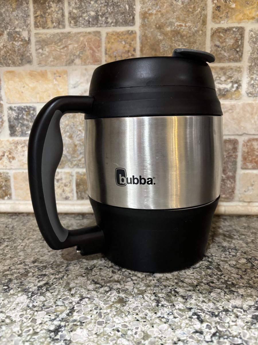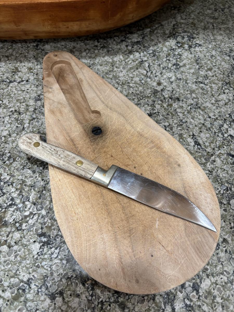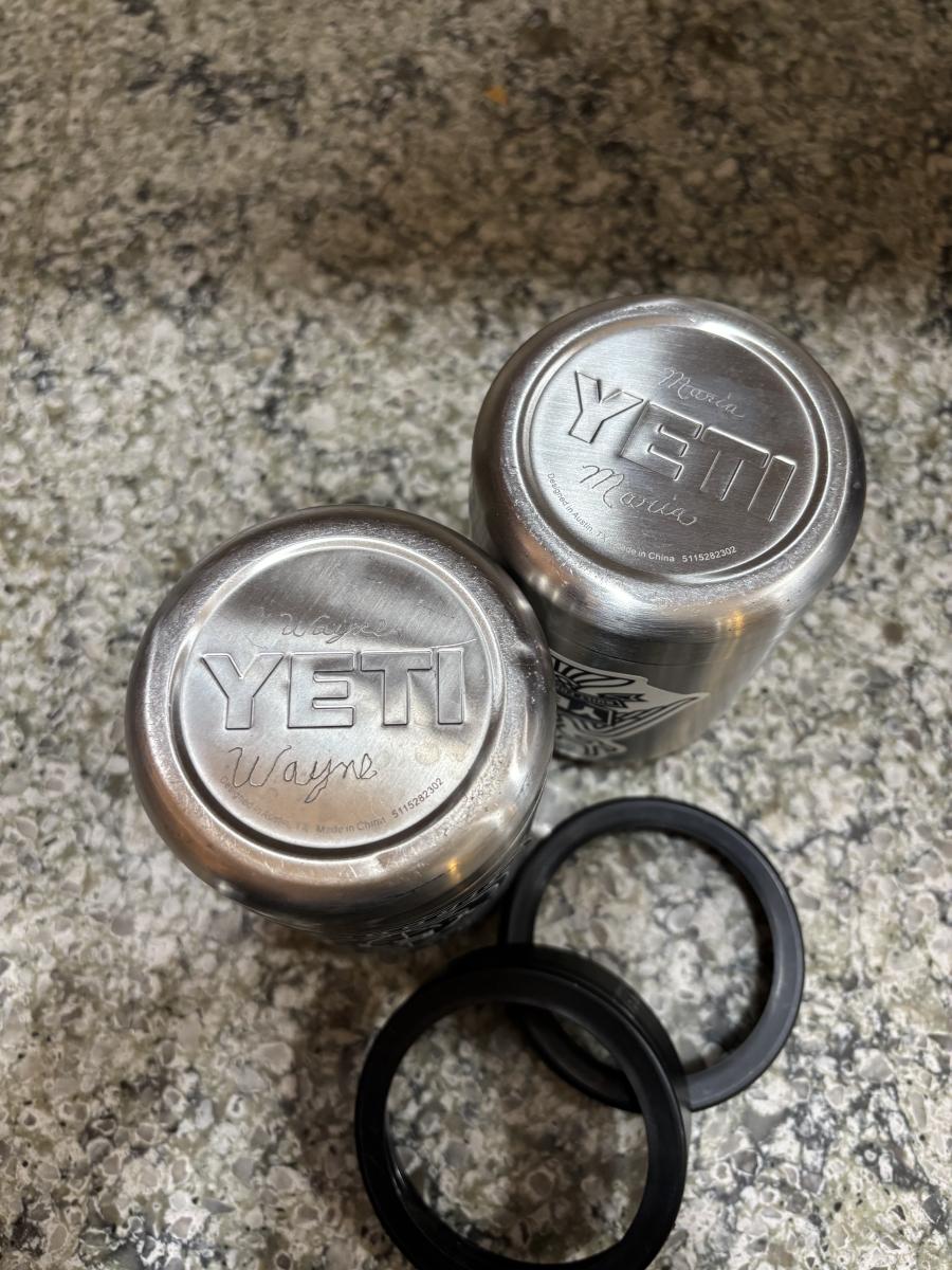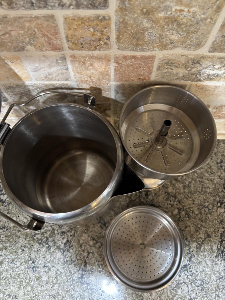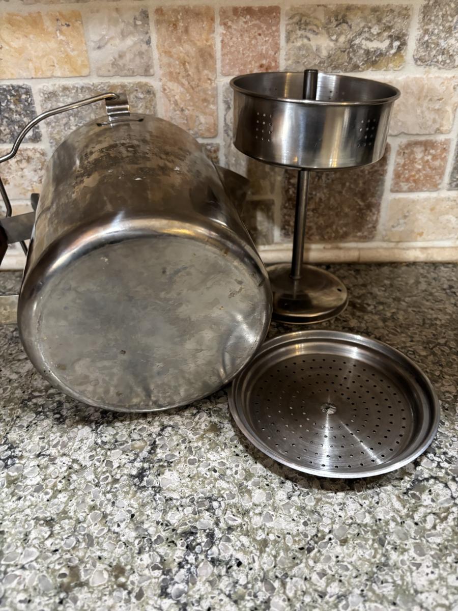 LOT 101: Large Wooden Bowl (21" x 11"), Yeti Mugs & Can Holders, All-Clad, Grill Basket, Cheese Board, Peculator Coffee Pot