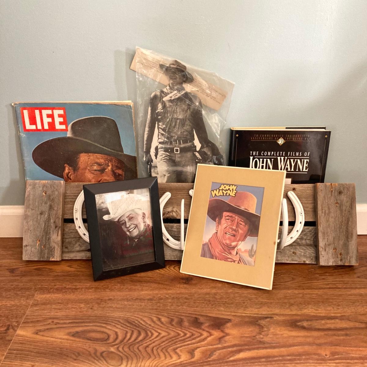 LOT 136: Horseshoe Rack with Collection of Western Memorabilia - John Wayne and Sally Star