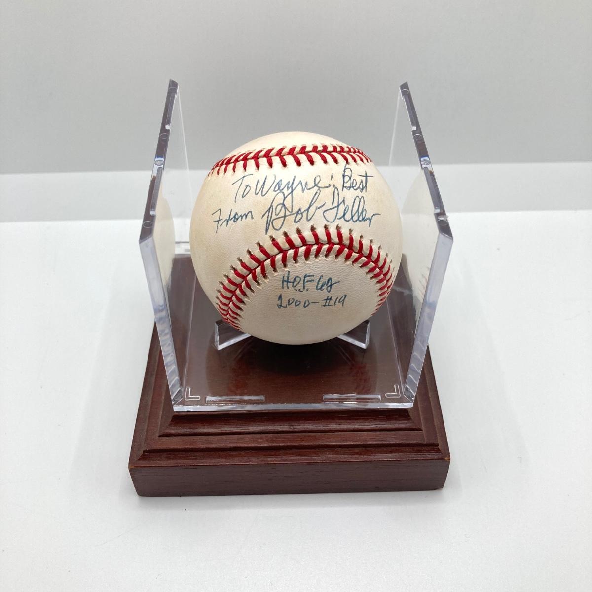 LOT 138: Autographed Robin Roberts HOF 76 Phillies Pitcher with COA and Numbered Bob Feller Ball HOF 62