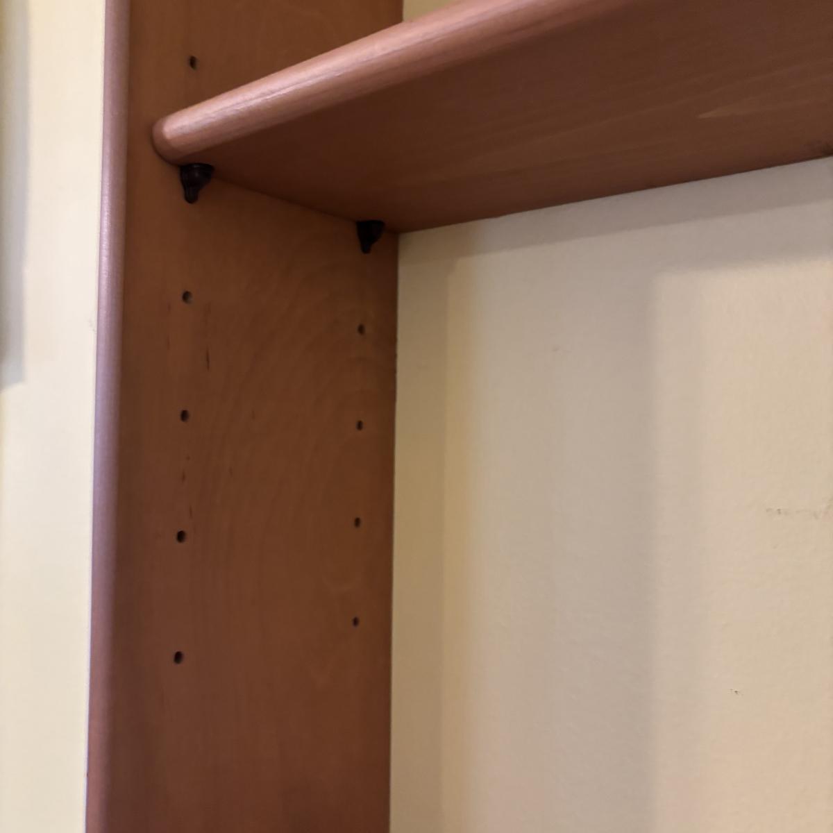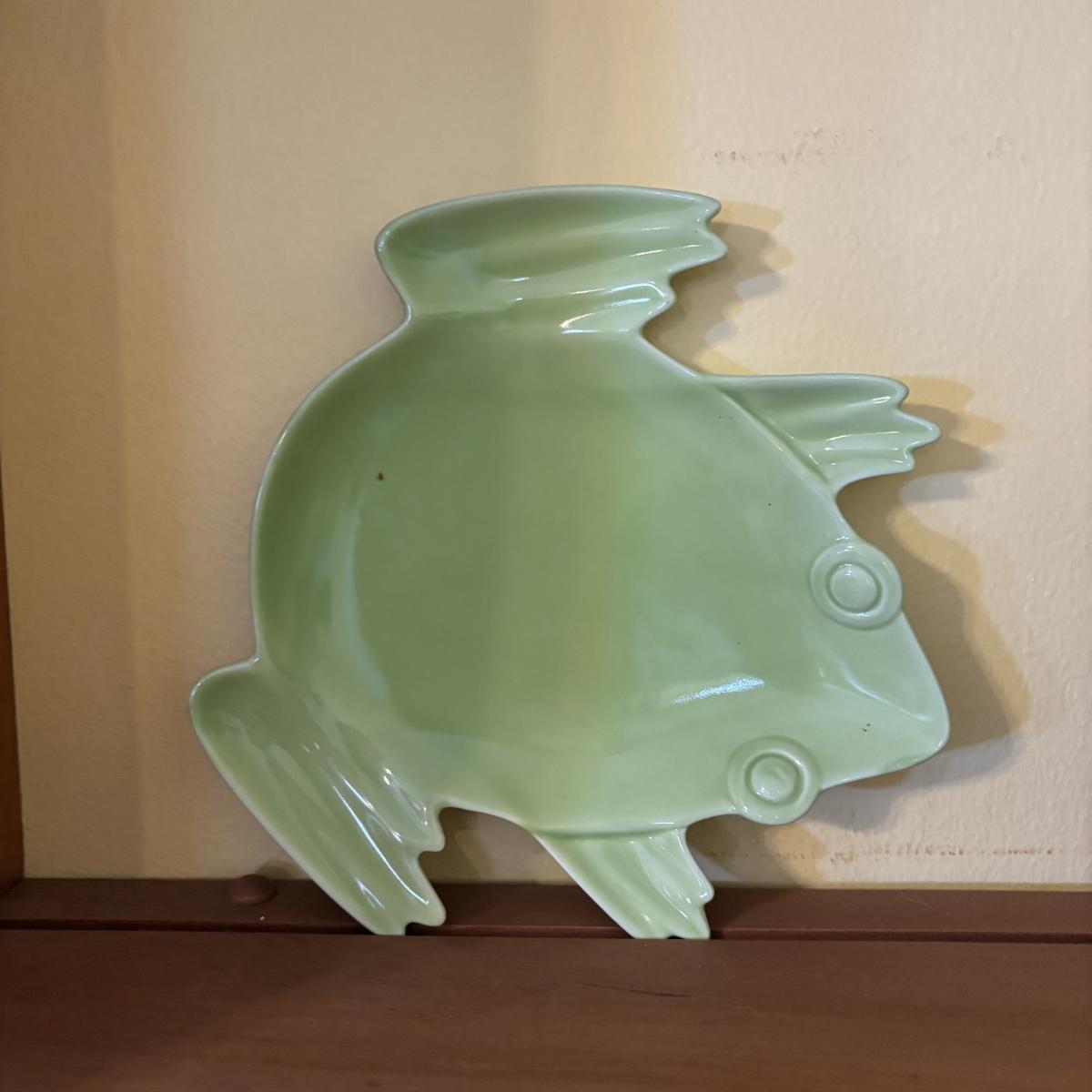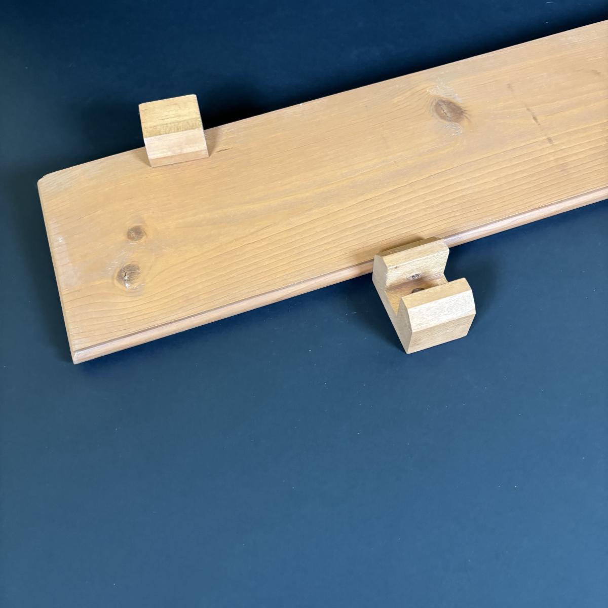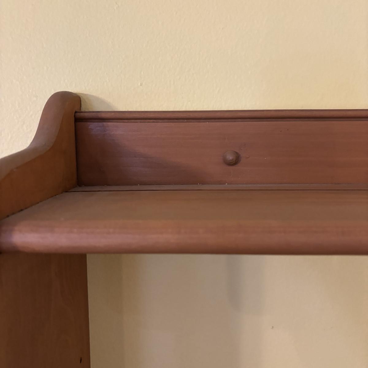 LOT 166: Wooden Adjustable Shelf & Floating Shelf along with Frog Ceramic Platers & Jar
