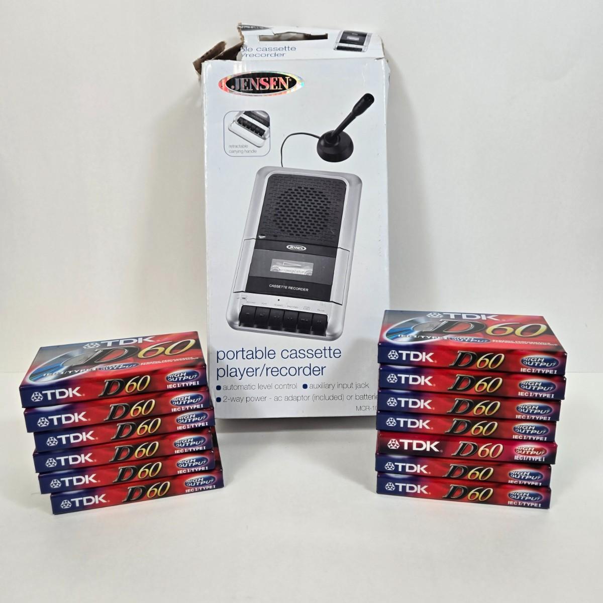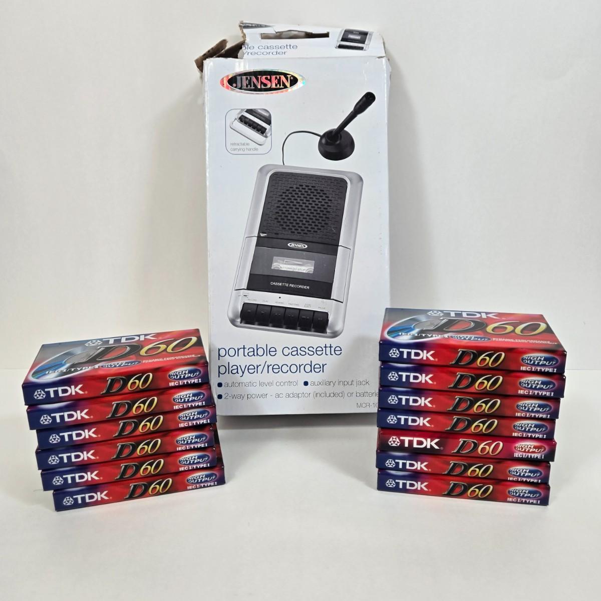 LOT 5: Jensen MCR-100 Portable Cassette Player/Recorder and Blank Cassette Tapes