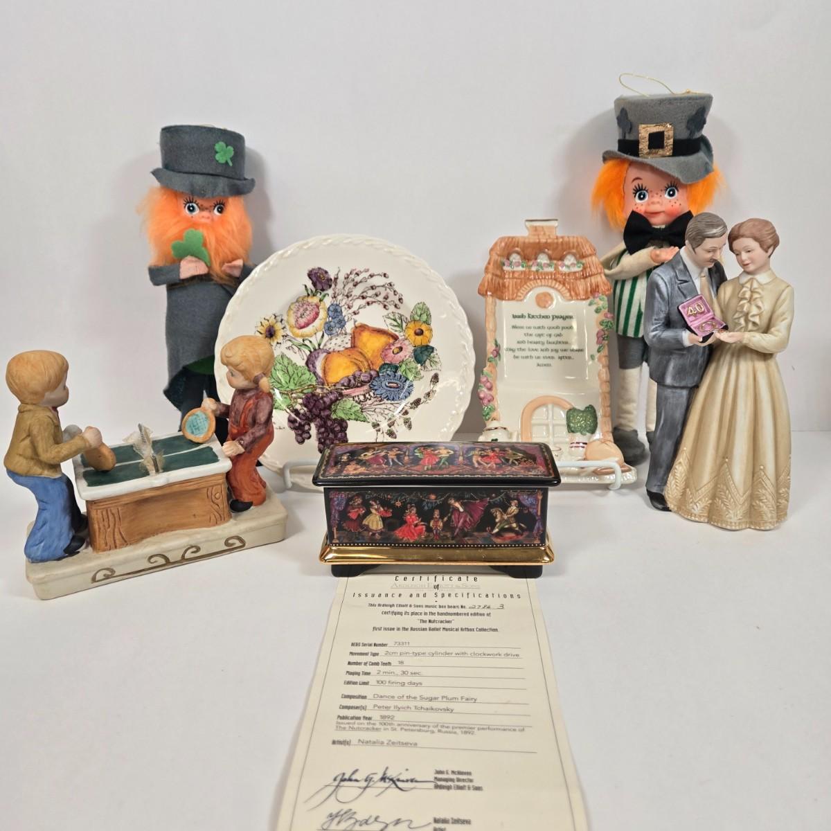 LOT 7: Vintage Vernon Kilns Fruitdale USA Hand Painted Plate, Lenox Irish Blessing Kitchen Prayer Spoon Rest, Ardleigh Elliott & Sons 1991 Russian Ballet The Nutcracker Music Box and More