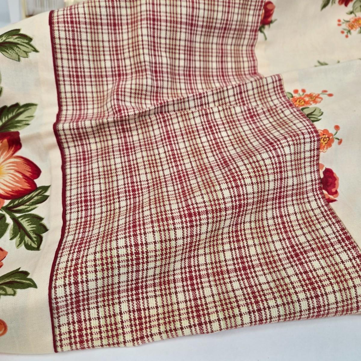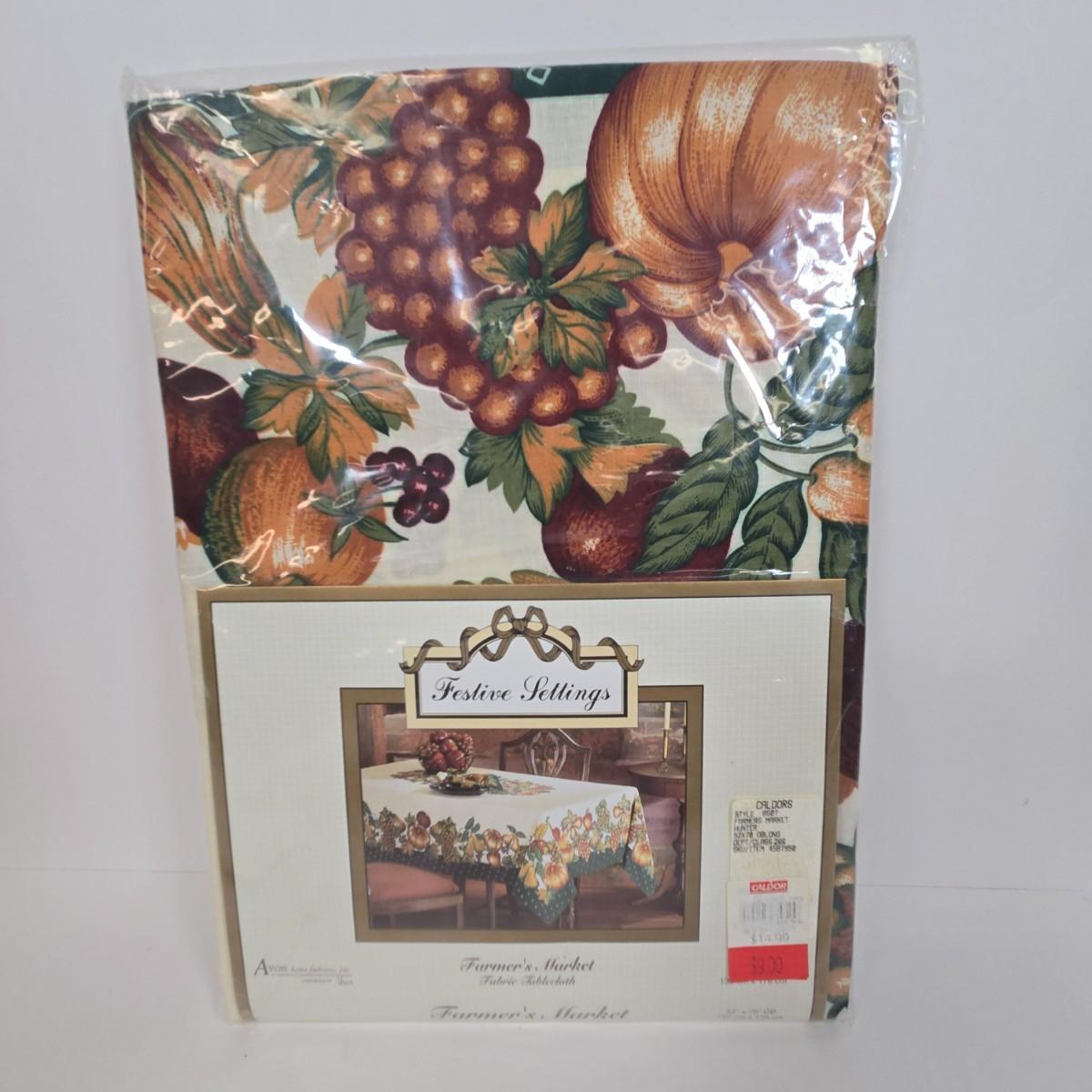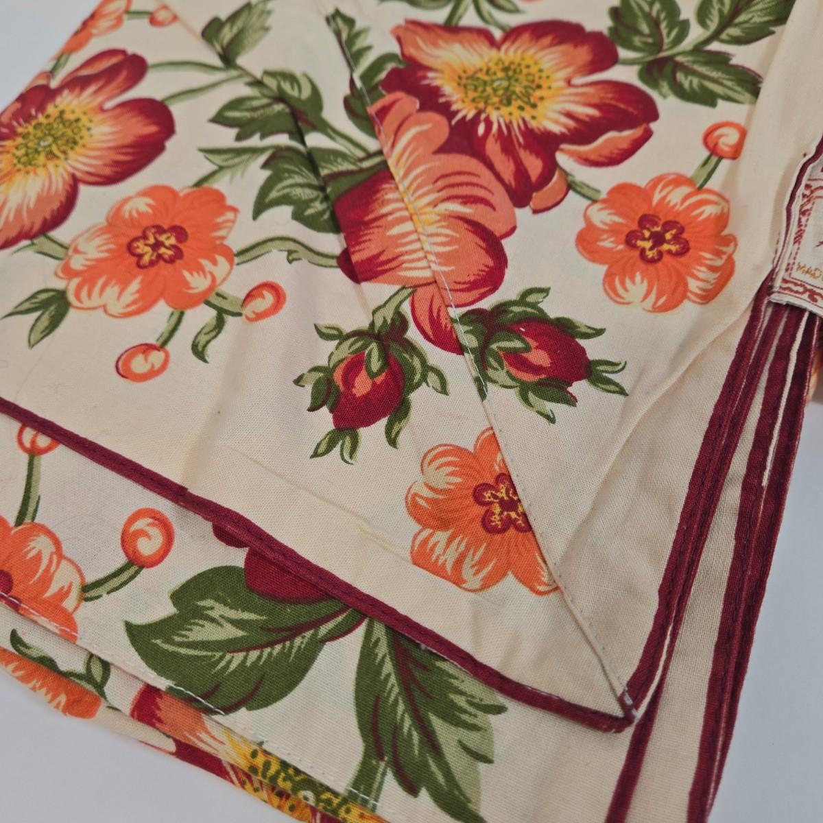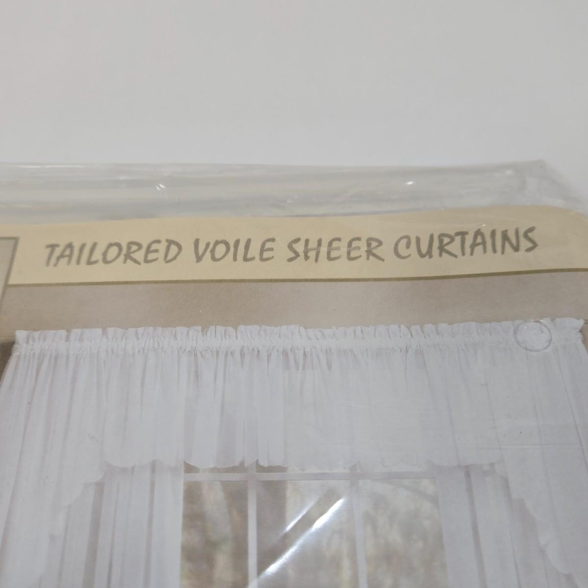 LOT 10: Two Small Square April Cornell Reversible Table Clothes, Three Sheer Curtain Panels, and Avon Home Fashions Tablecloth