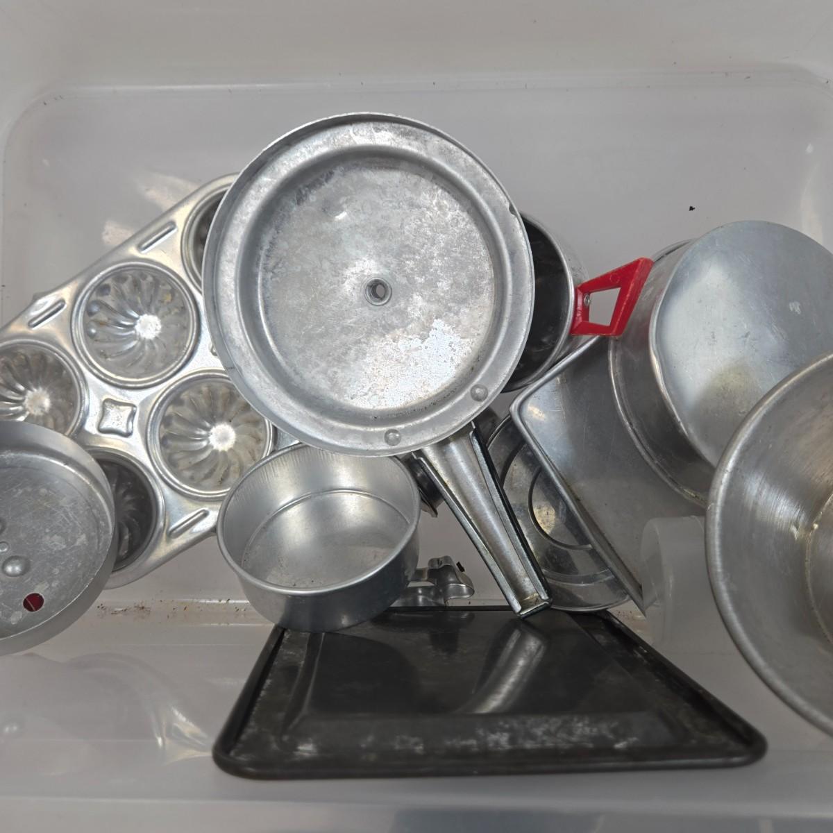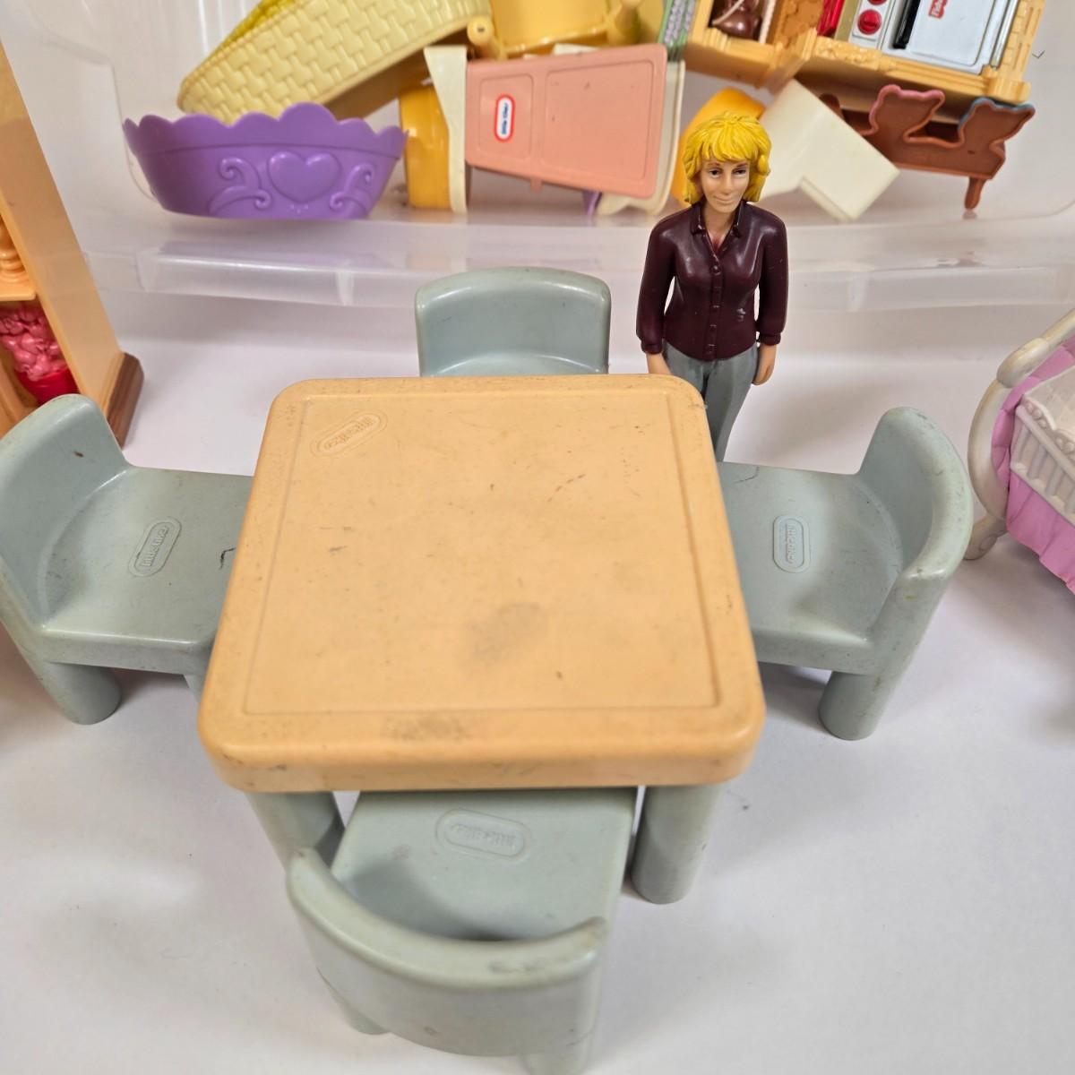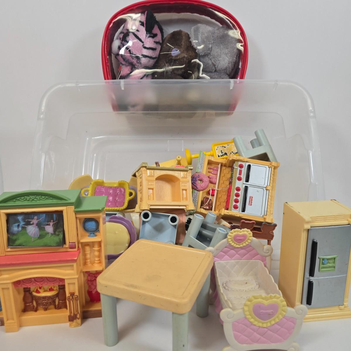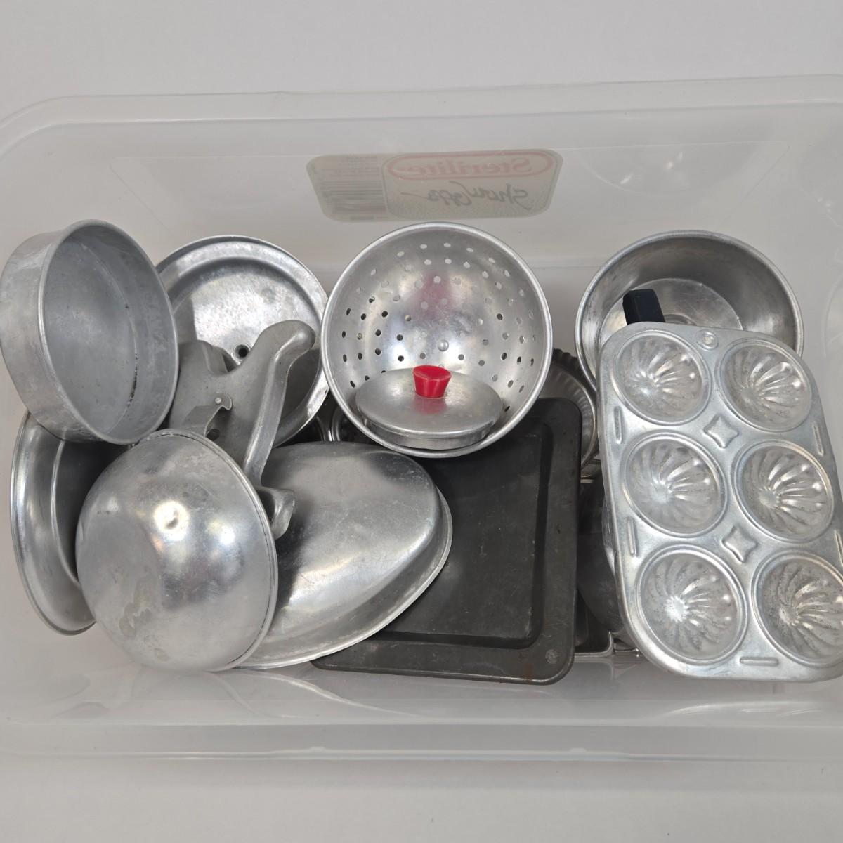 LOT 13: Collection of Vintage Children's Aluminum Toy Kitchenware, Vintage Corgi Toys Volkswagen 1300 Saloon, Wooden Igloo Filled with Penguins, Little Tikes Doll House Furniture, and More