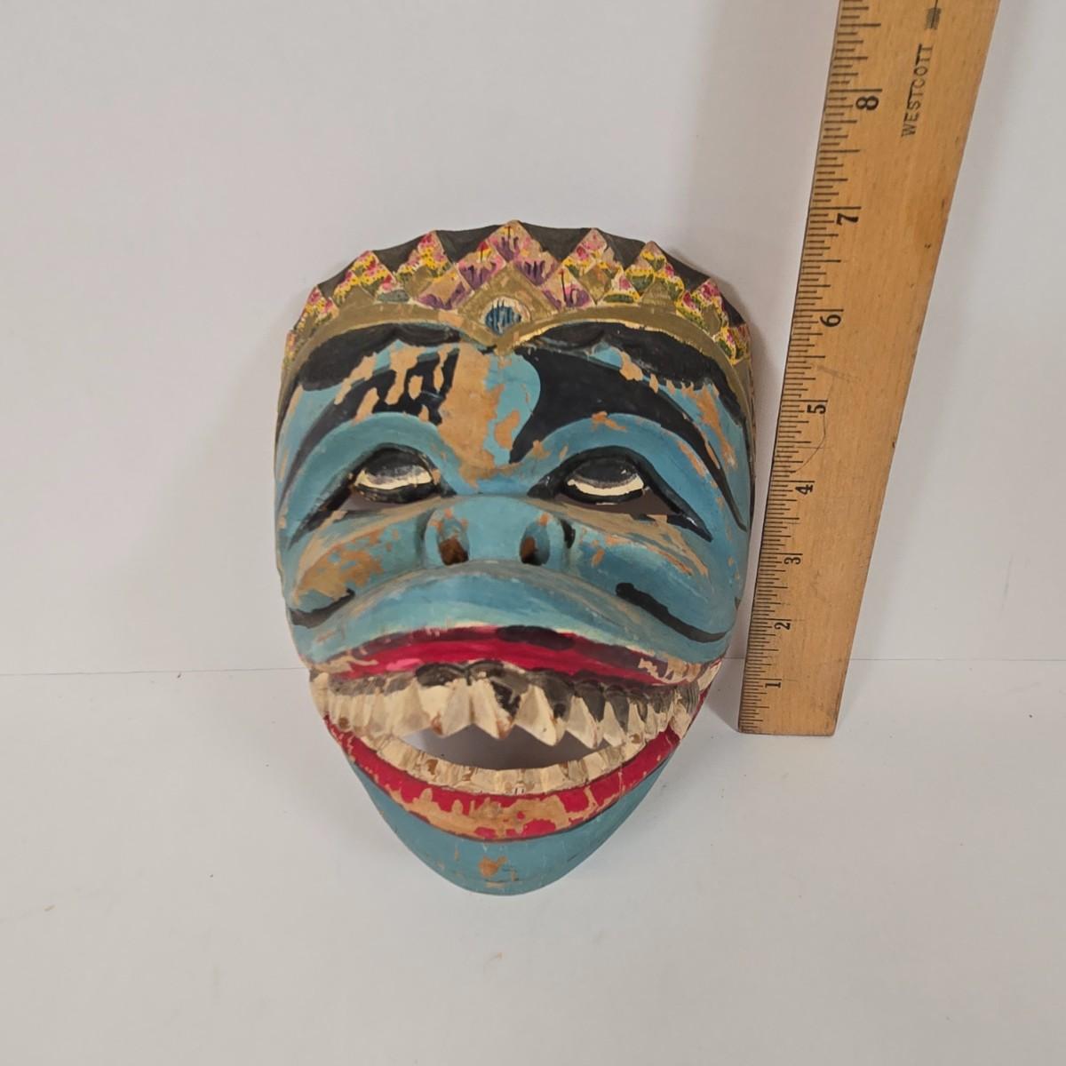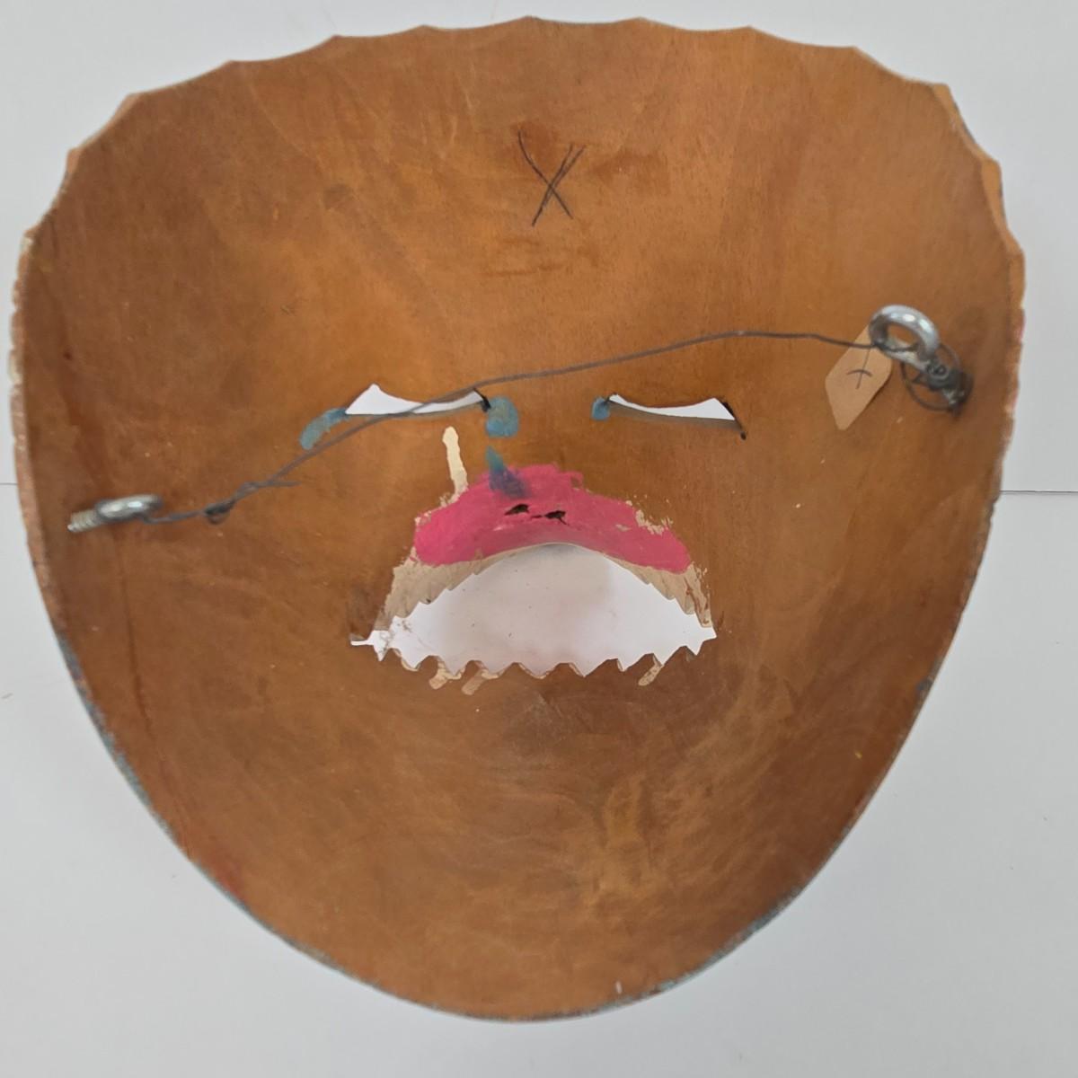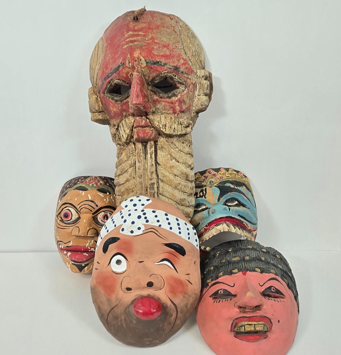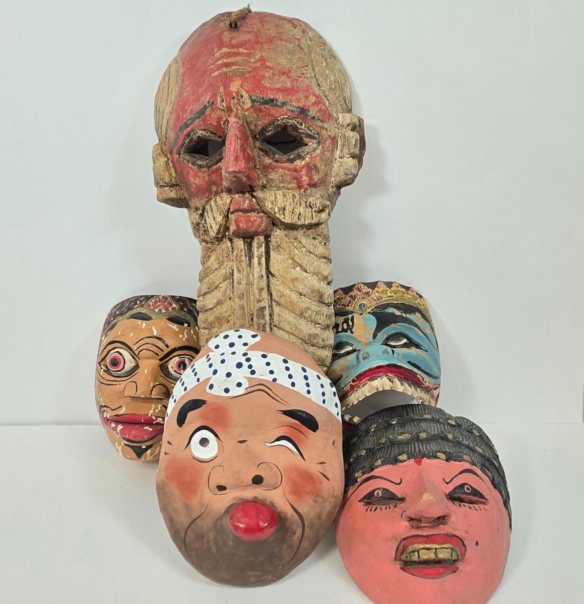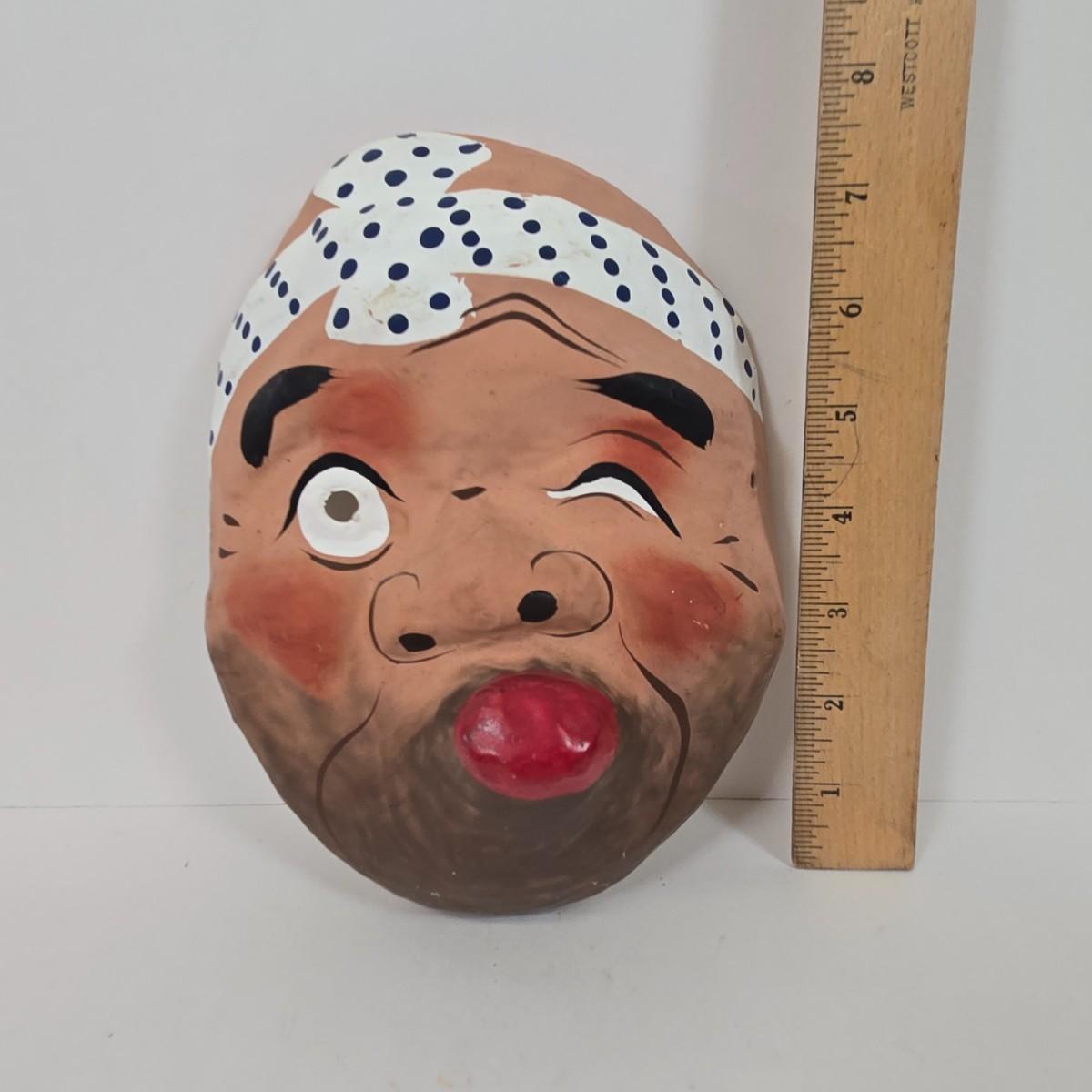 LOT 19: Vintage Hand Carved Wooden Masks and Vintage Japan Paper Machete Folk Tale Mask