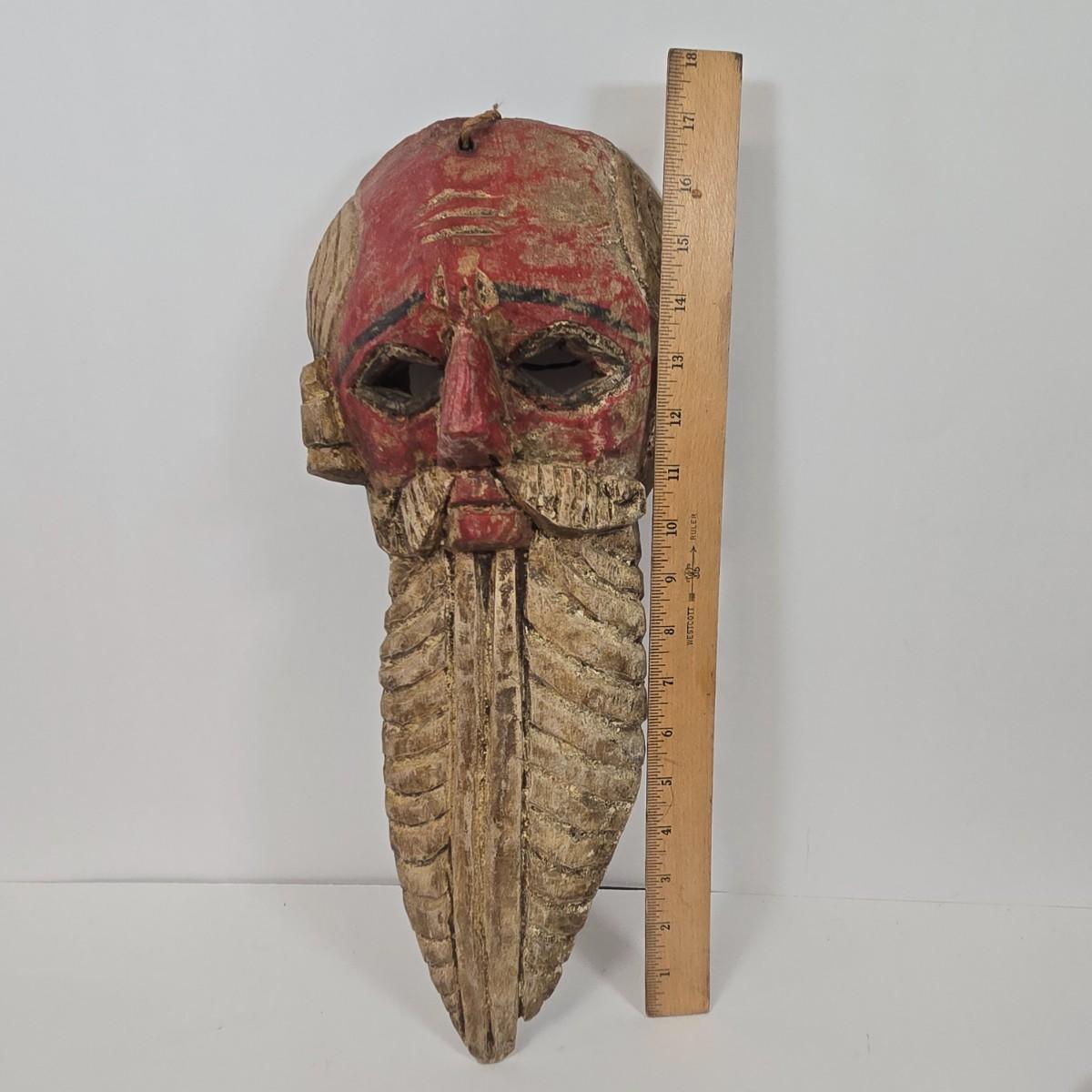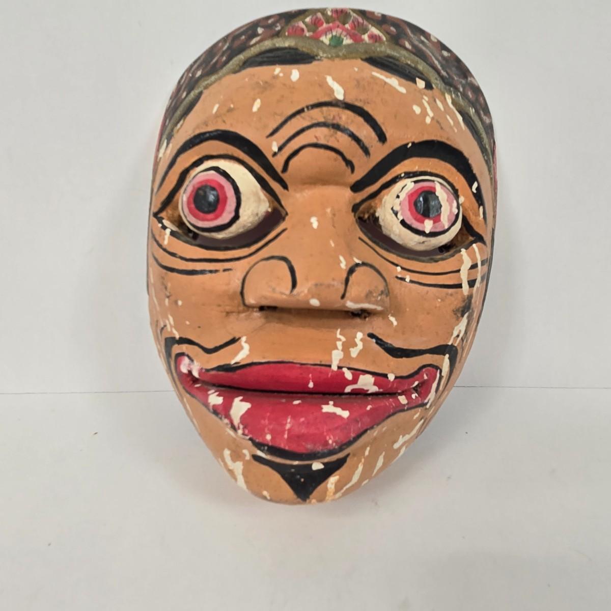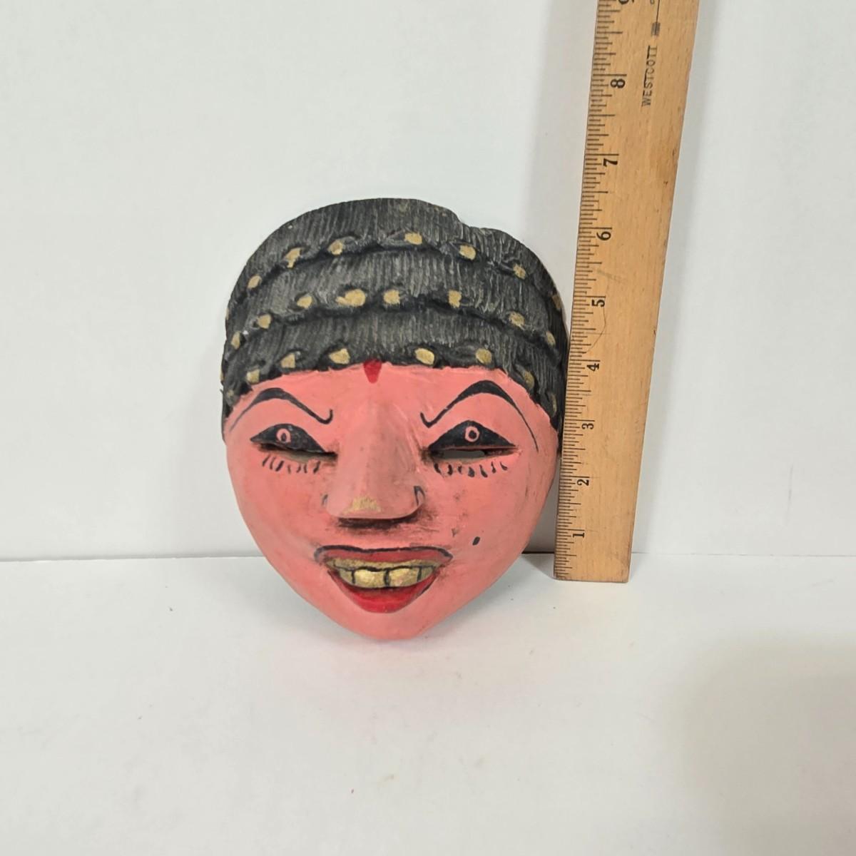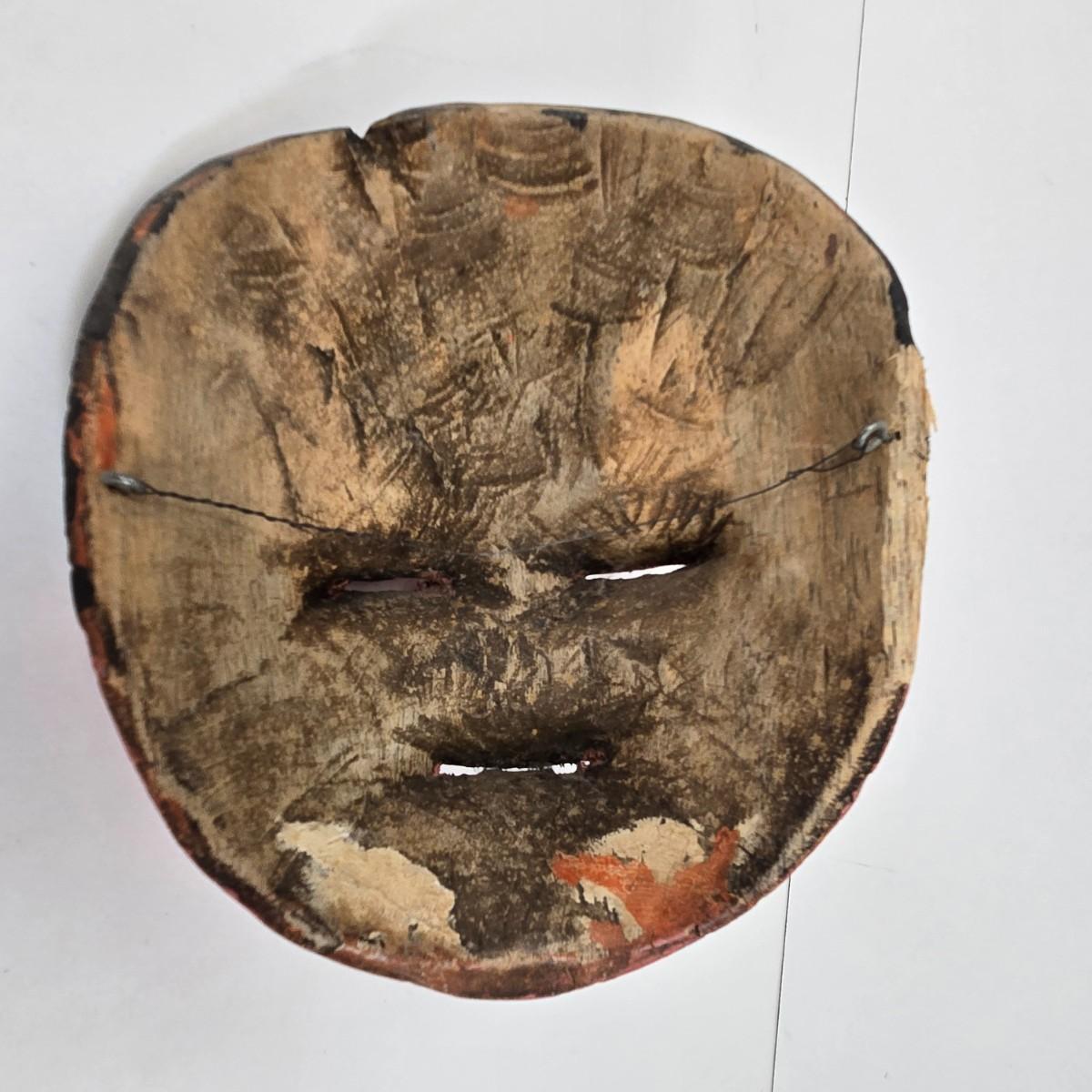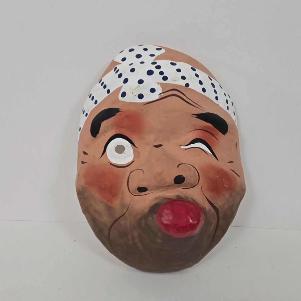 LOT 19: Vintage Hand Carved Wooden Masks and Vintage Japan Paper Machete Folk Tale Mask