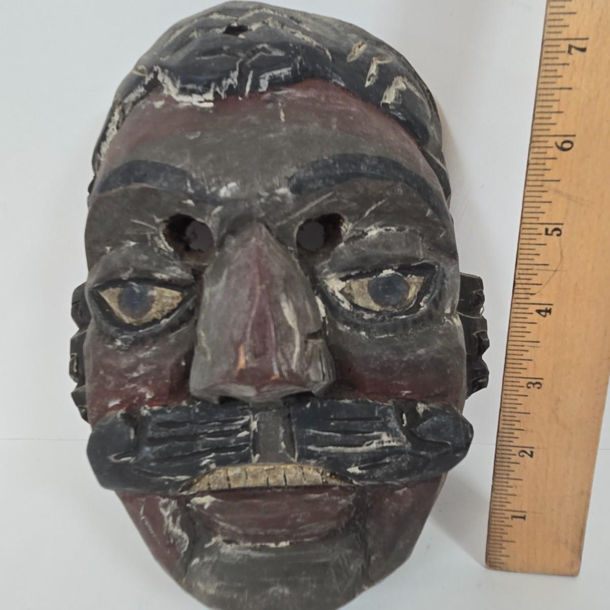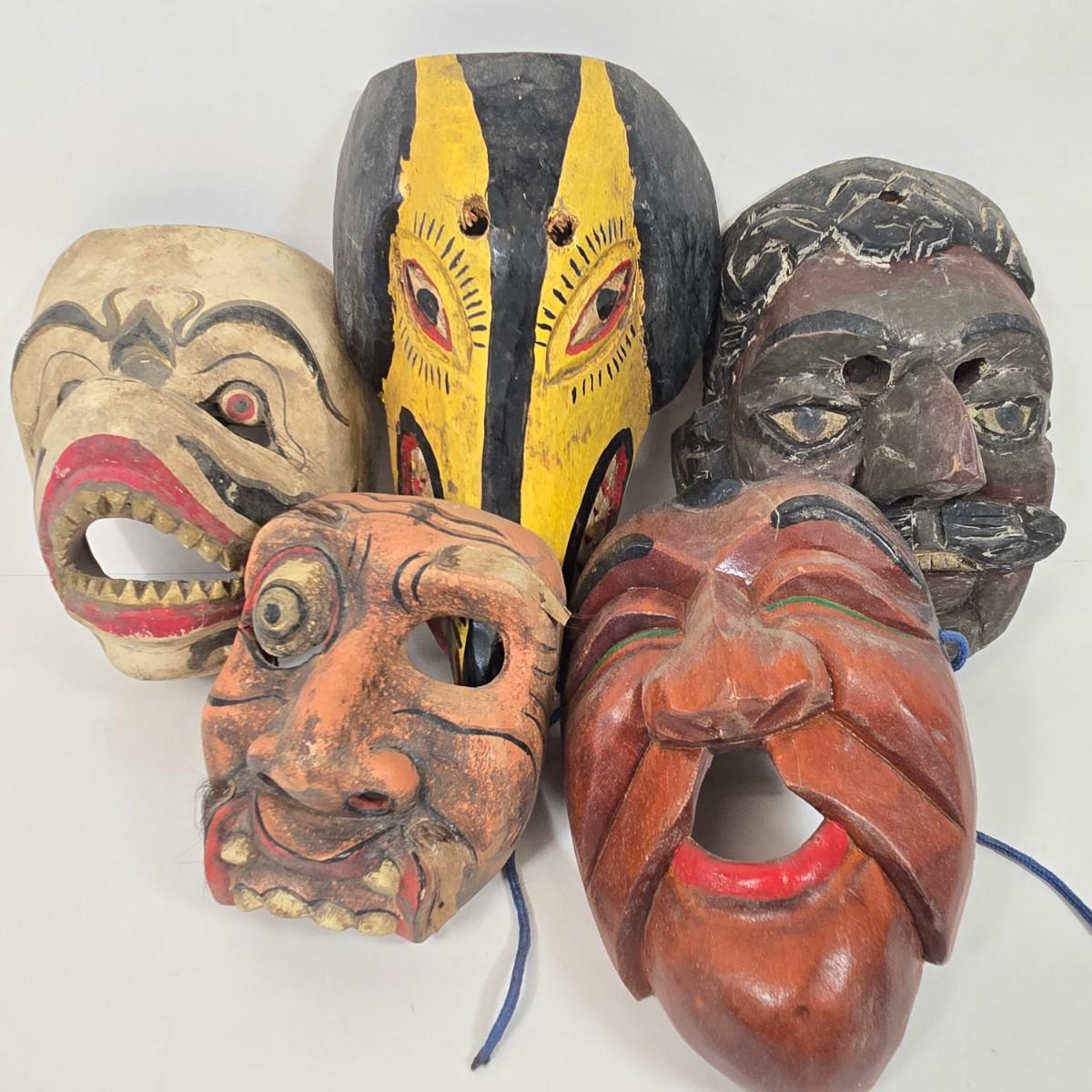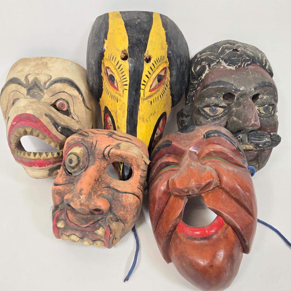 LOT 20: Vintage Guatemalan Folk Art Wooden Dog Mask and Other Hand Carved Wooden Masks