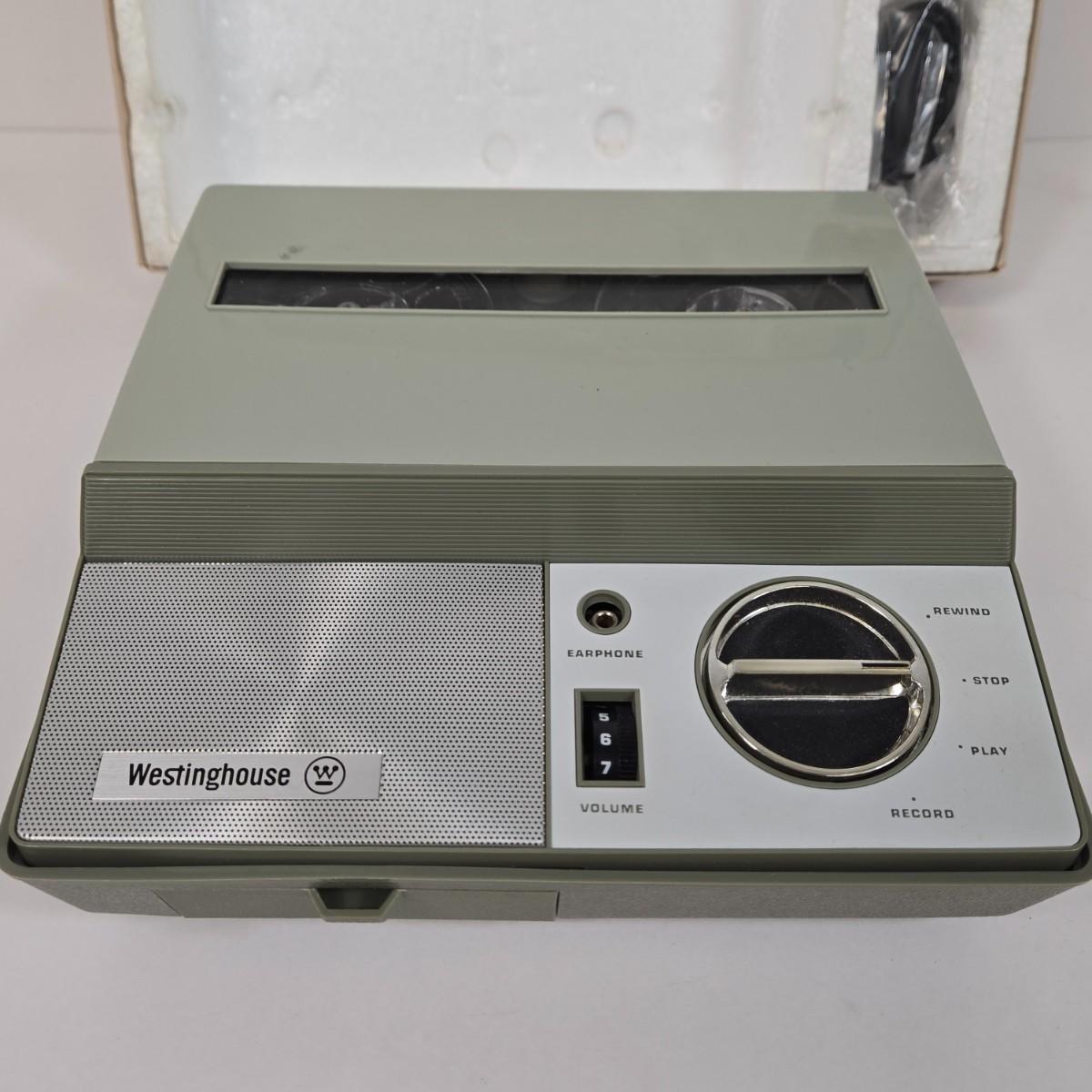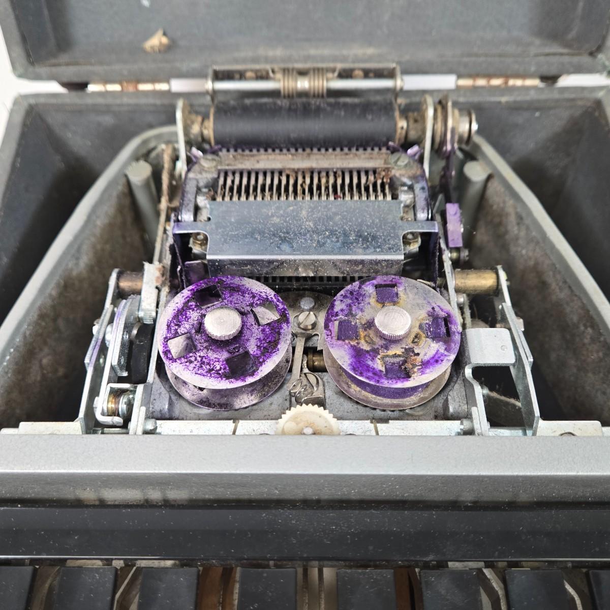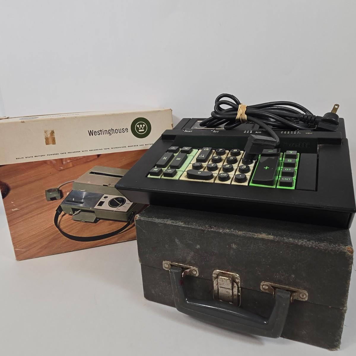 LOT 21: Vintage La Salle Stenotype Machine in Original Case, Olivetti Logos 43PD Desktop Printing Calculator, and Westinghouse H-27R1 Reel-to-reel Tape Recorder in Original Box