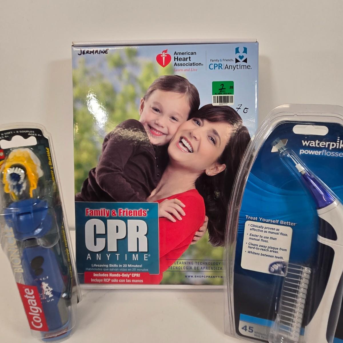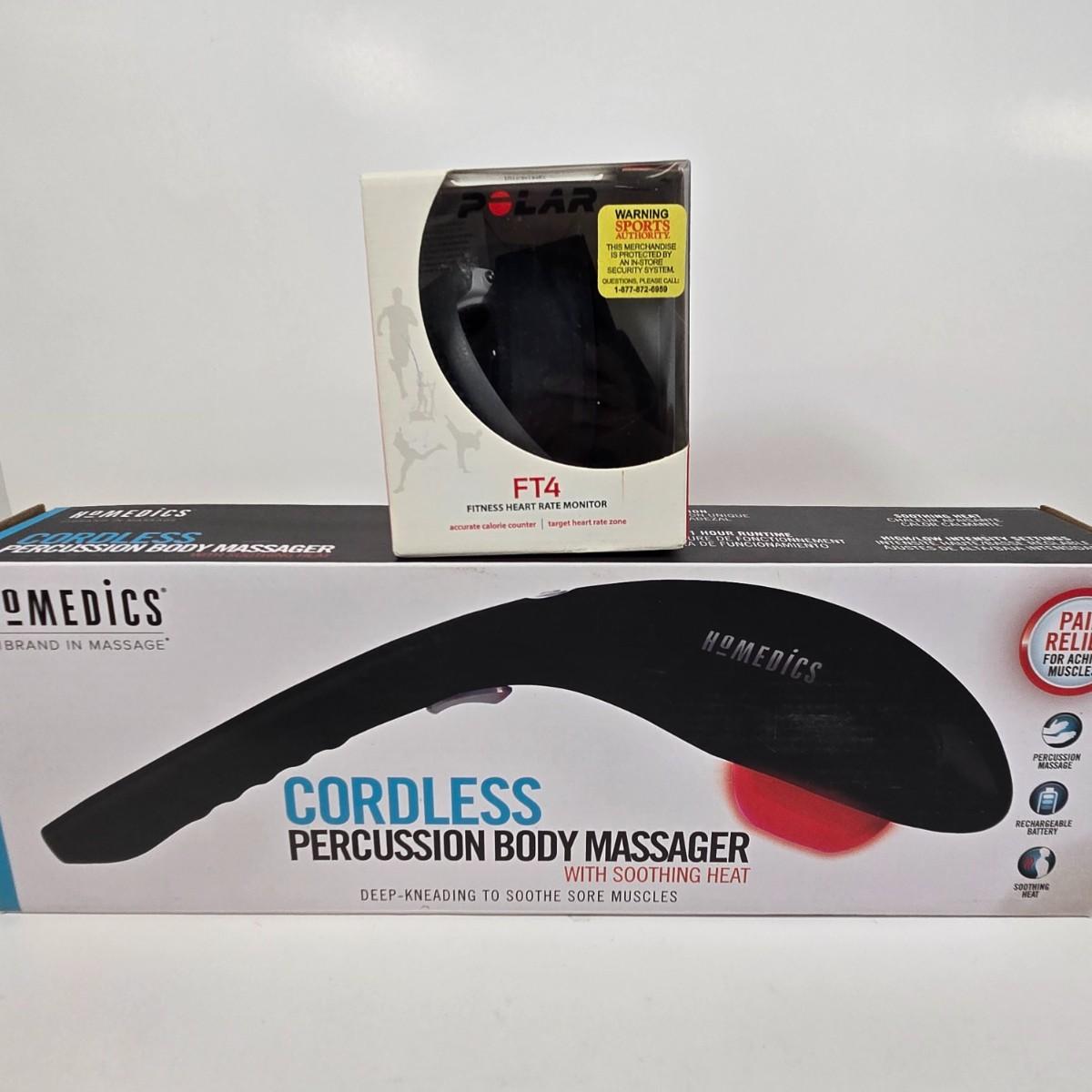 LOT 34: American Heart Association Family & Friends CPR Anytime Training Kit, HoMedics Cordless Percussion Body Massager with Soothing Heat, MedCenter Monthly Medication Organizer, and More