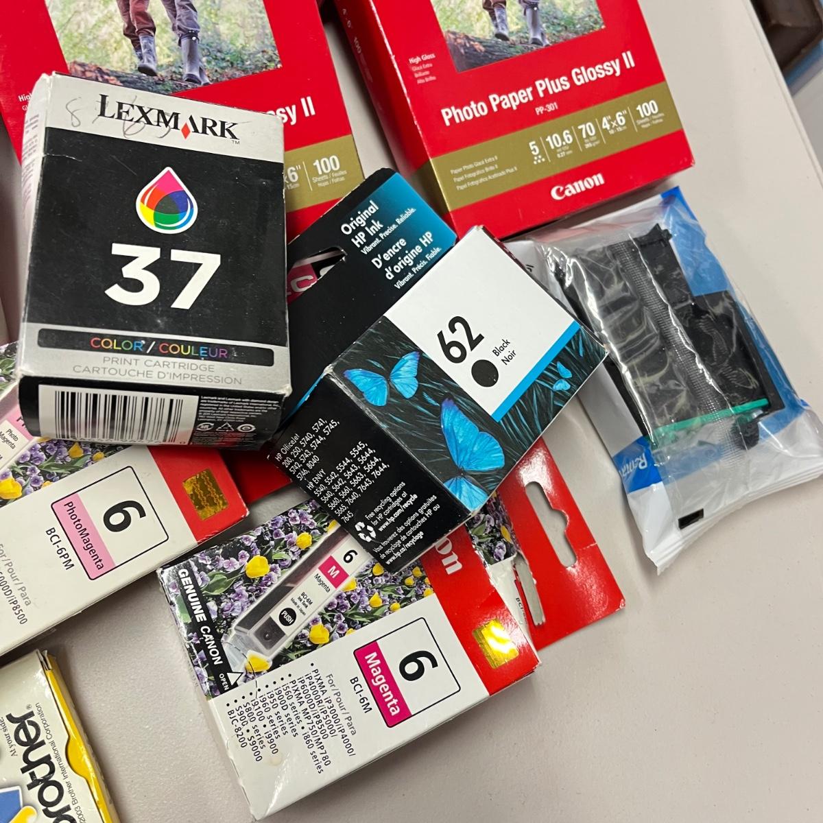 LOT 74: Assorted Printer Ink Cartridges and Paper