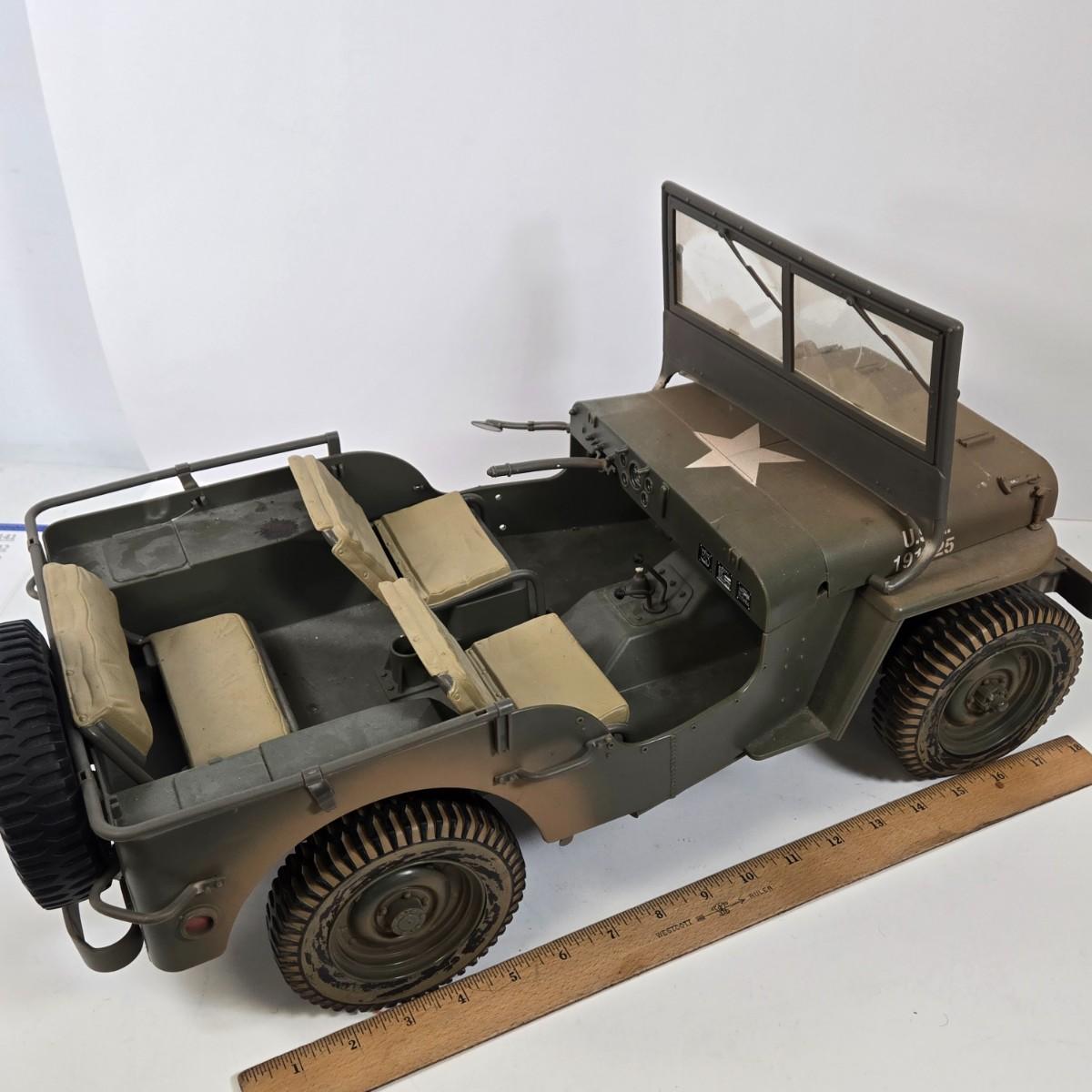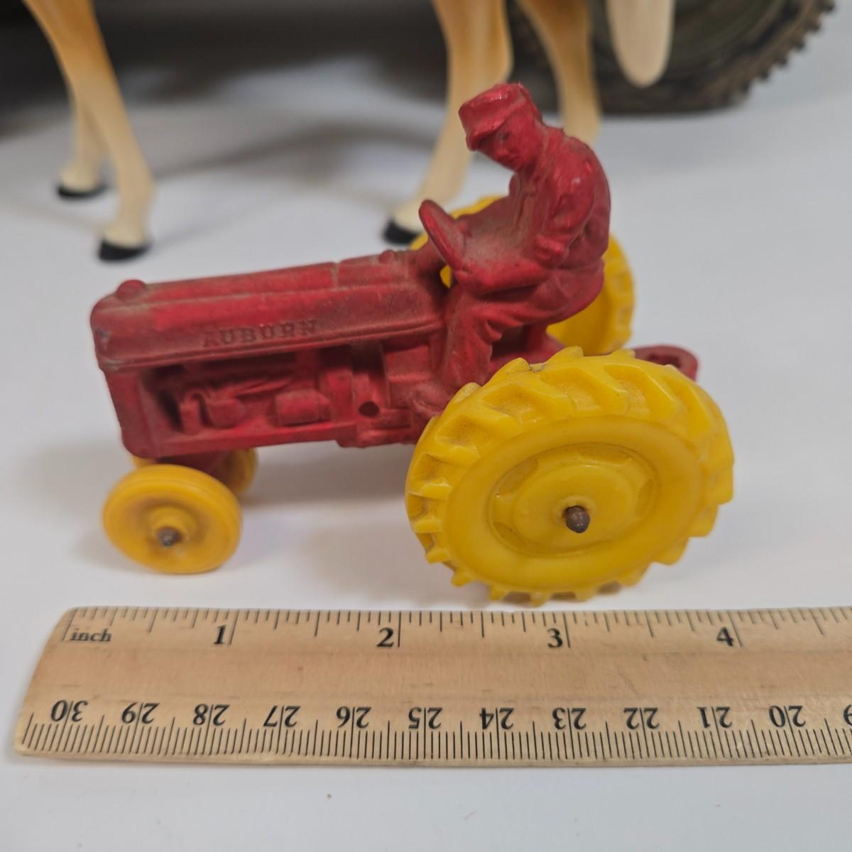 LOT 81: G.I. Joe 1941 Willys MB Jeep Toy, United Airlines Plane Toy, Wooden Model Car, Auburn Rubber Company Toy Tractor, and Plastic Horse