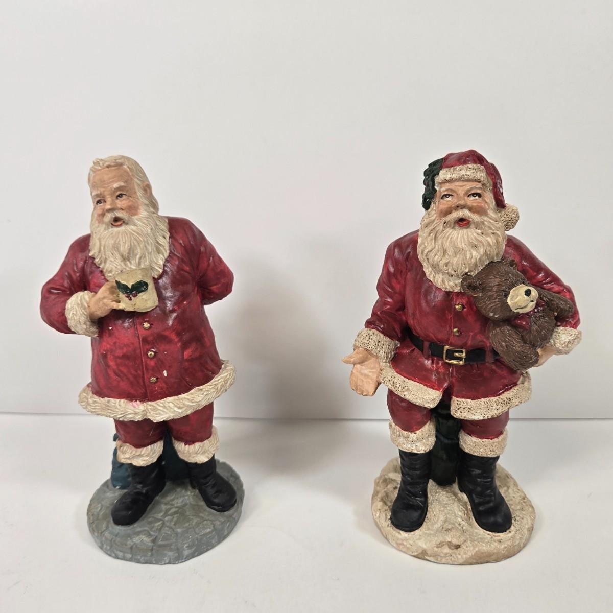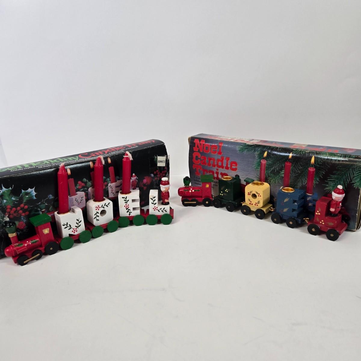 LOT 92: Two Lighted Santa Claus Christmas Window Decor, Two Miniature Noel Candle Trains, and Jolly St Nick Collection Two Jovial Holiday Santa Figurines
