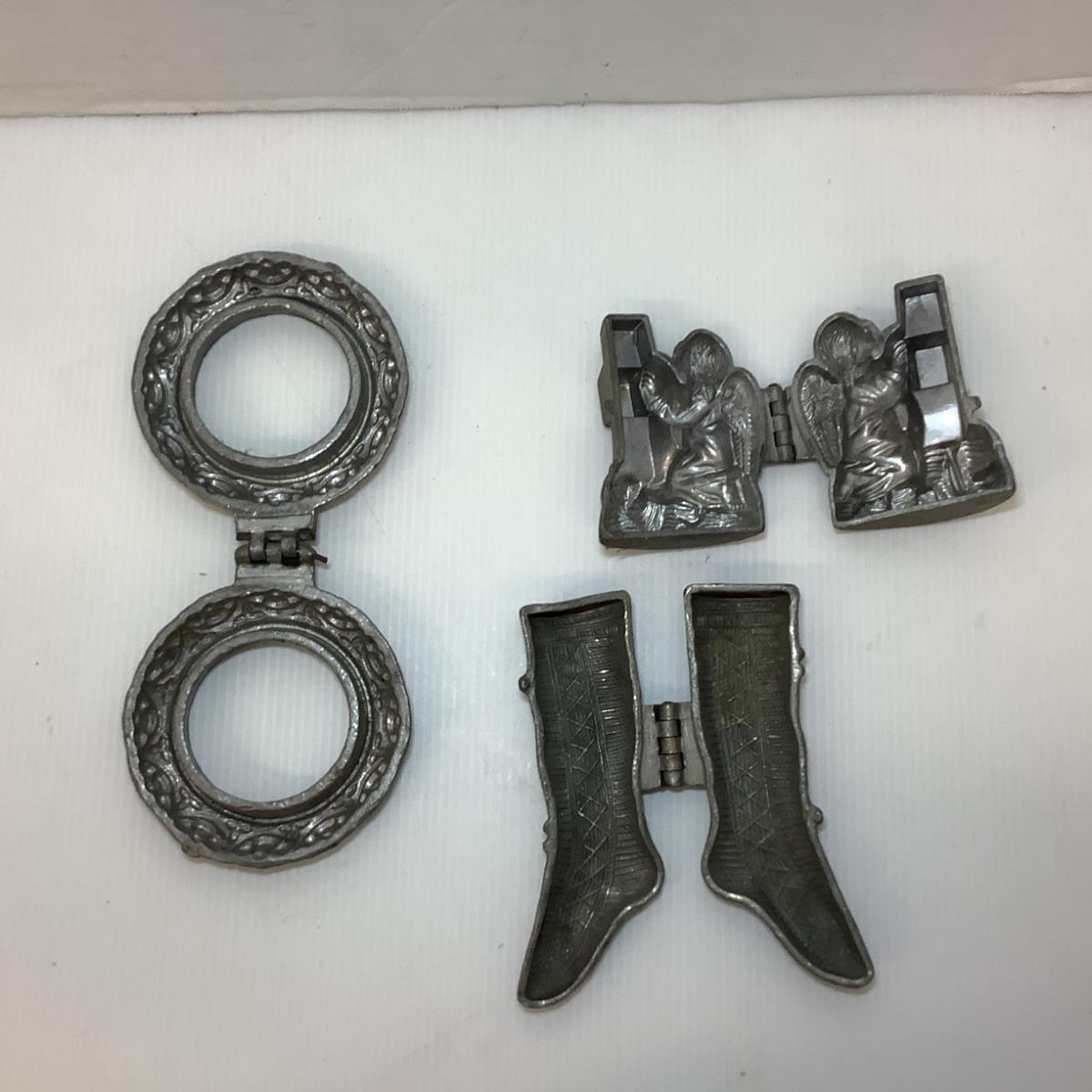 Antique Hinged Pewter Eppelsheimer Ice Cream Molds, molds are from Arundel Ice Cream Company in Baltimore MD, active in the 1940’s & 1950’s