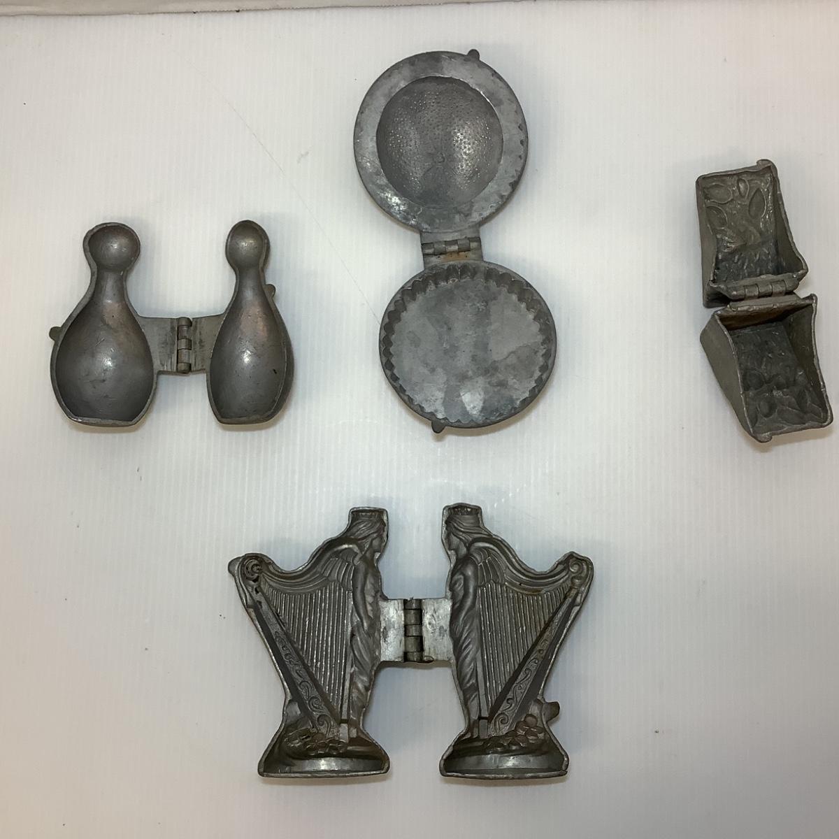 Antique Hinged Pewter Eppelsheimer Ice Cream Molds, molds are from Arundel Ice Cream Company in Baltimore MD, active in the 1940’s & 1950’s