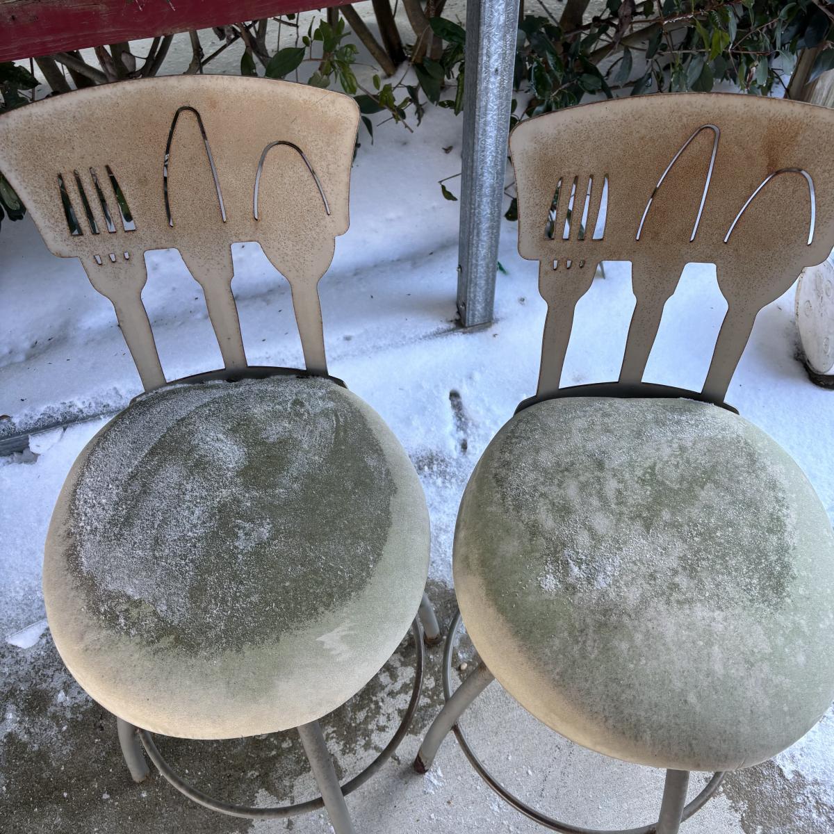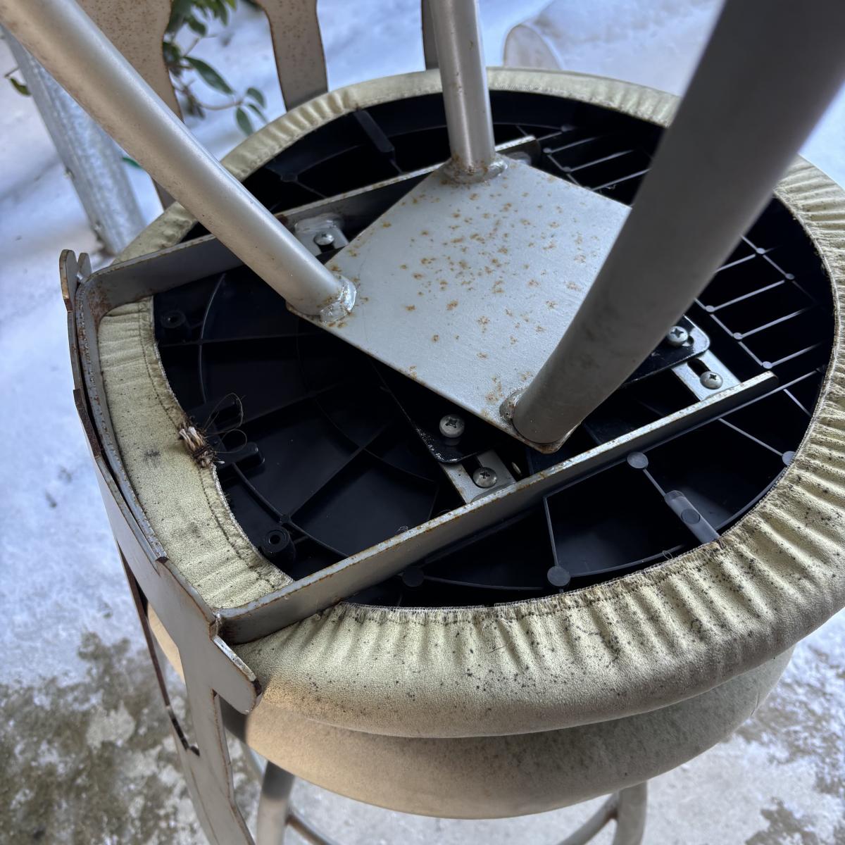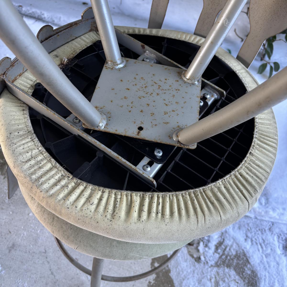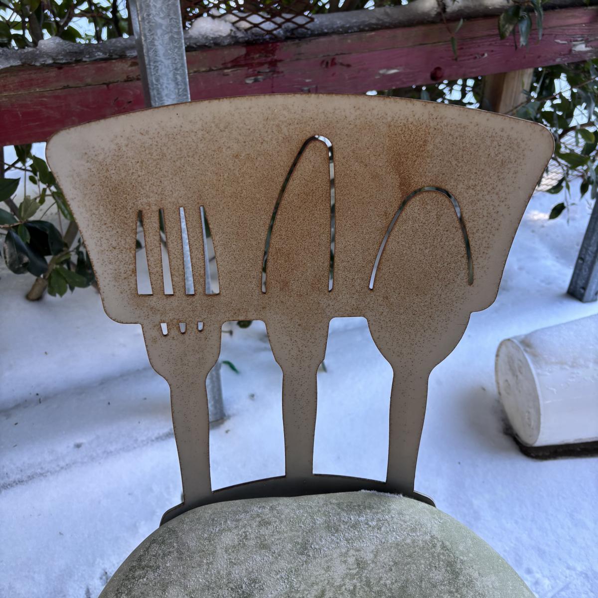 LOT 181: MCM Metal Barstools w/Cutlery Shaped Cutouts - Ready for Upcycling!