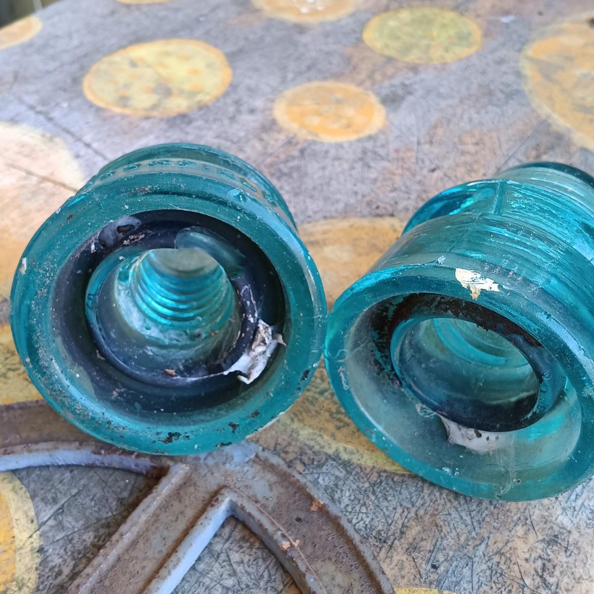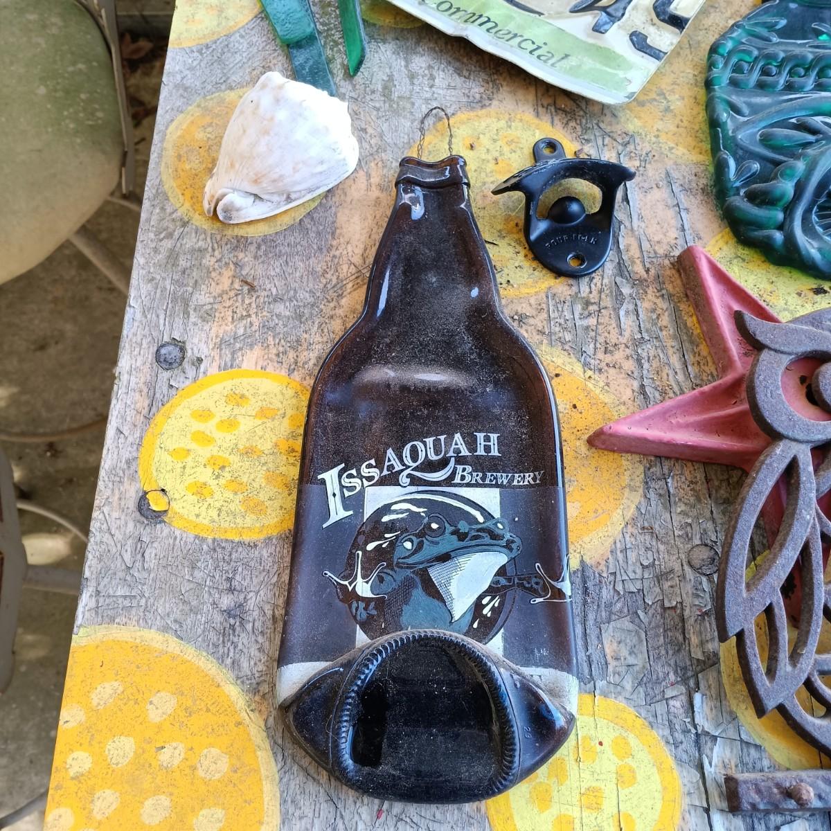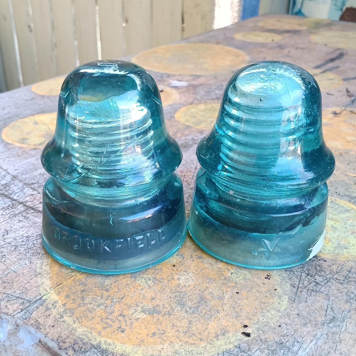 LOT 188: Cast Iron Star, Blue Glass Insulators, Glass Frog Wind Chime, Metal Peace Sign & More