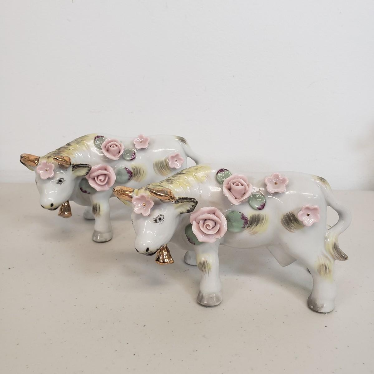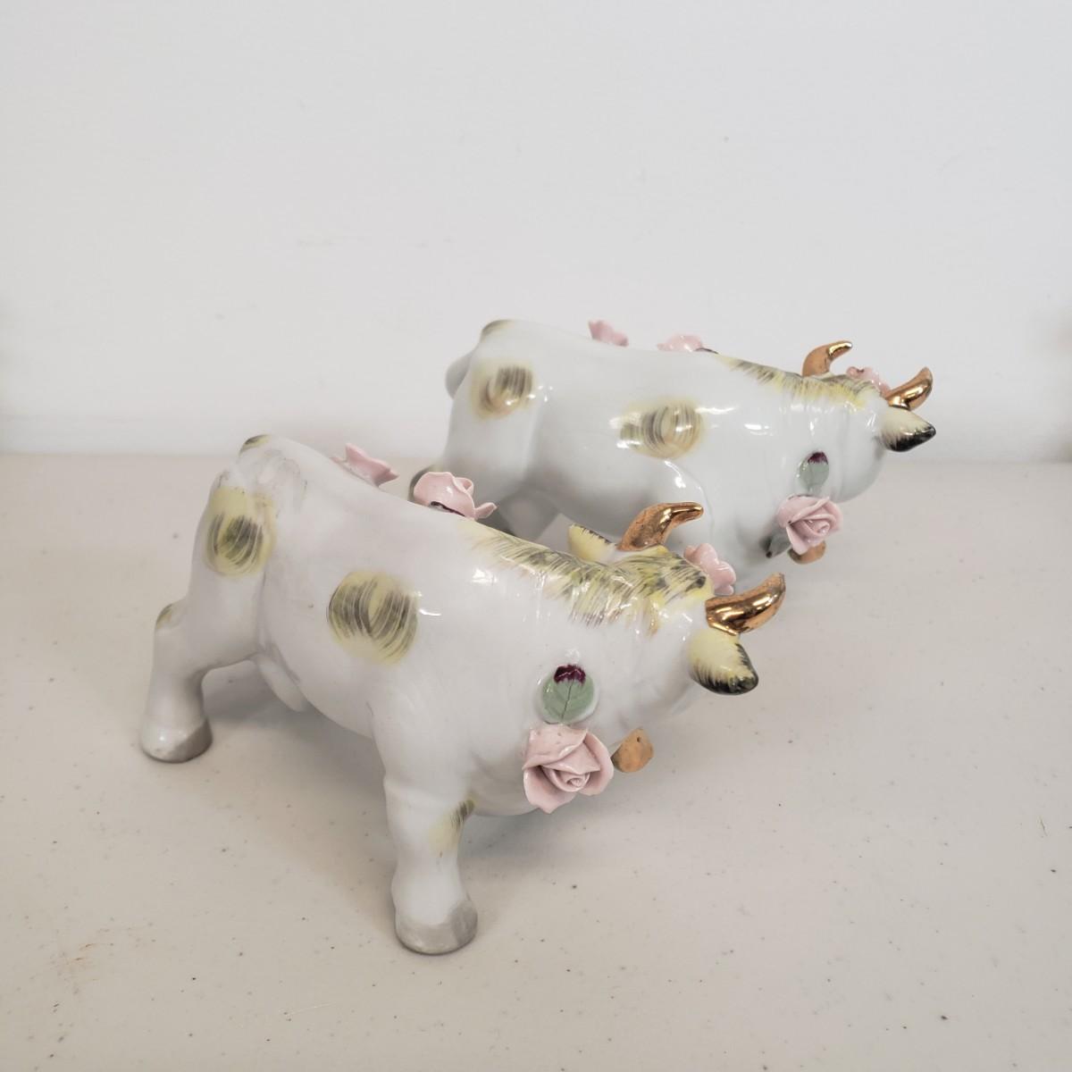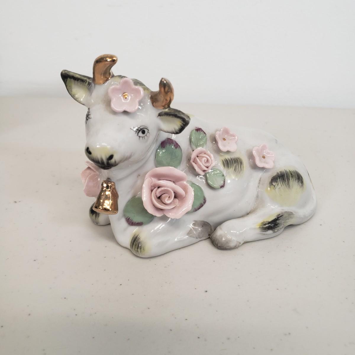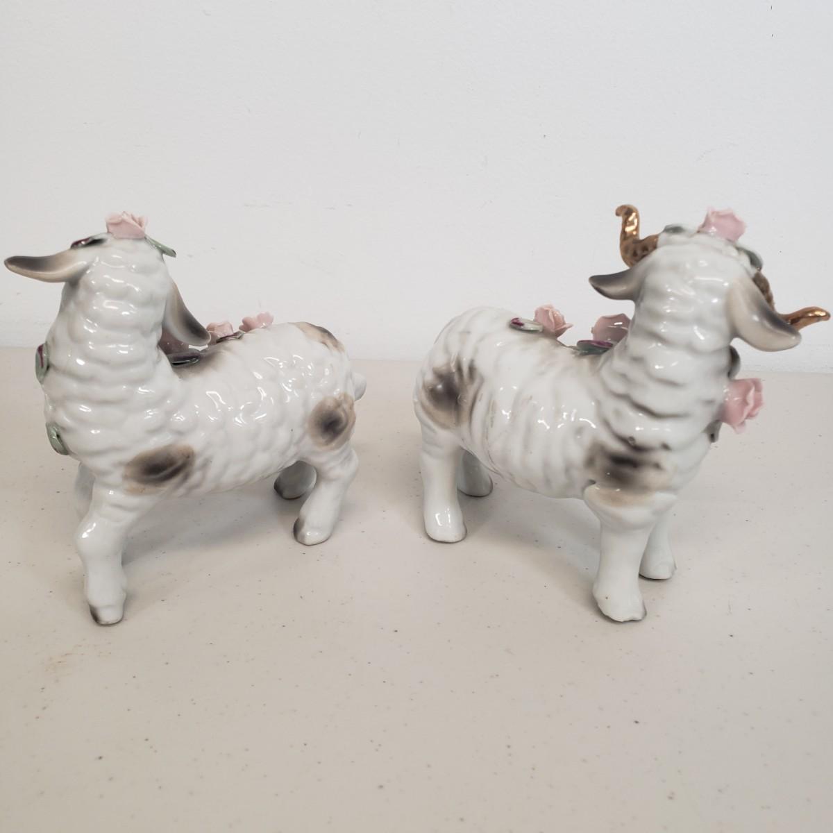 LOT Set of 4 Porcelain Cow & Sheep Figurines with Seashell Decorated Rabbit