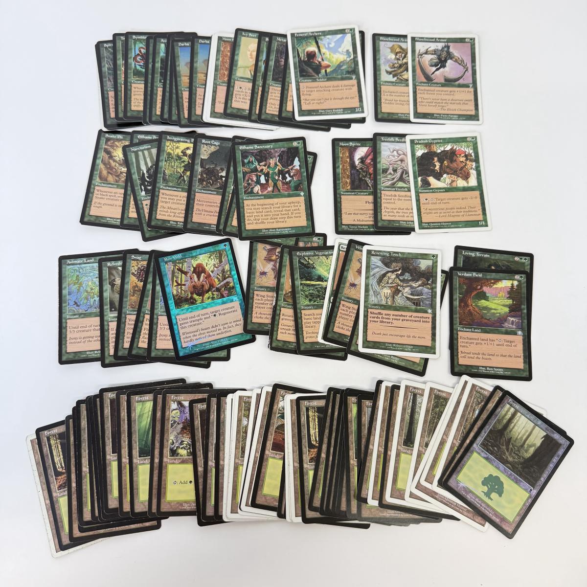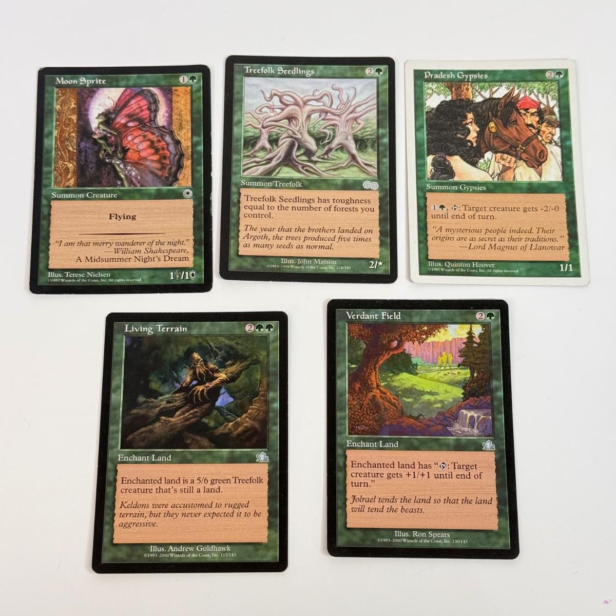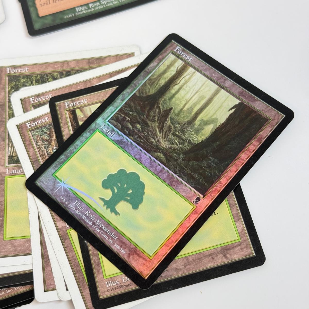 LOT 26: Vintage Magic the Gathering MTG TCG Cards: Forest Basic Land Cards & Green Uncommons
