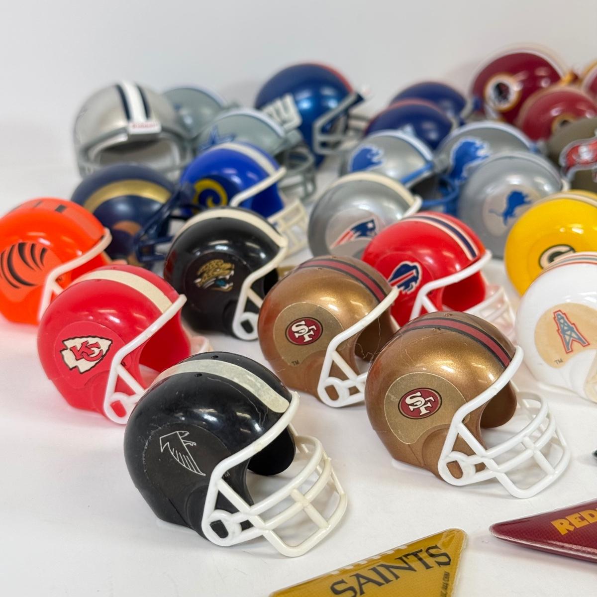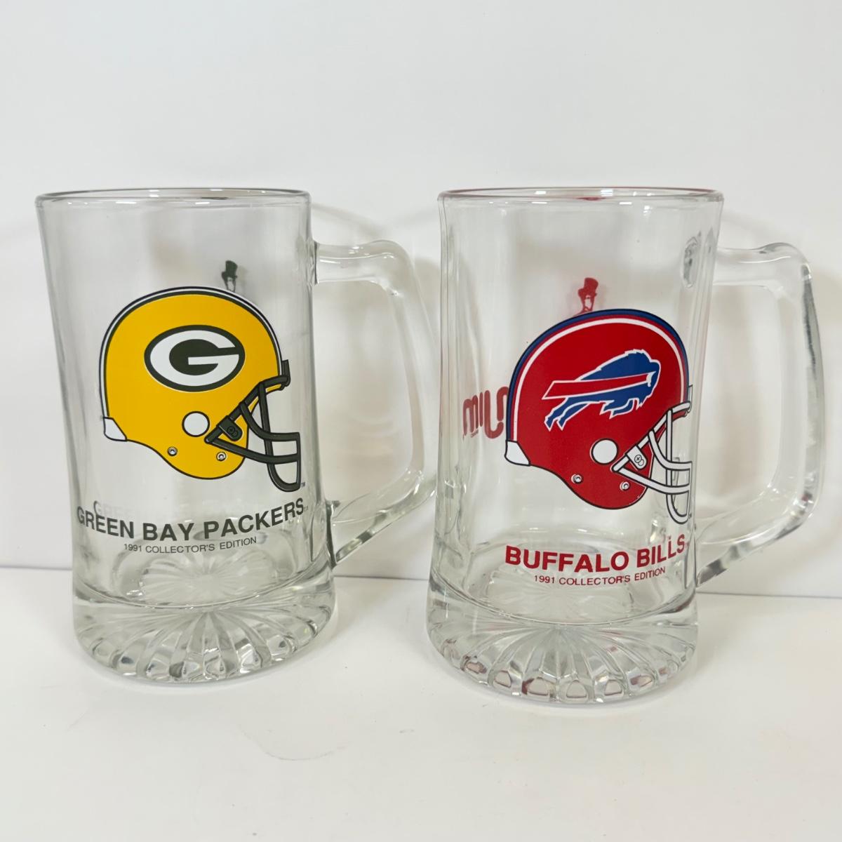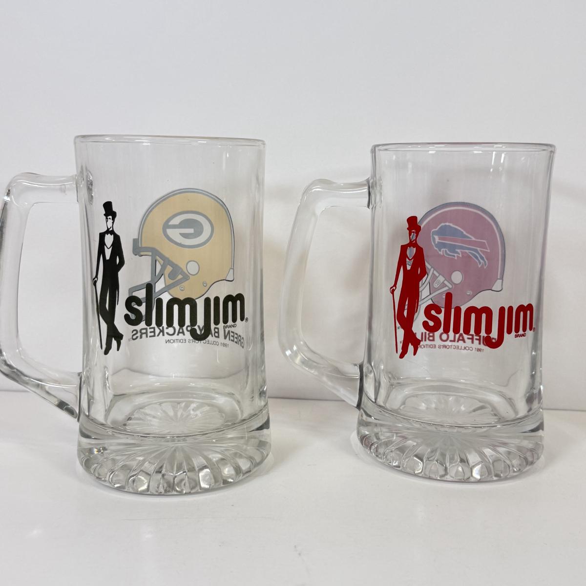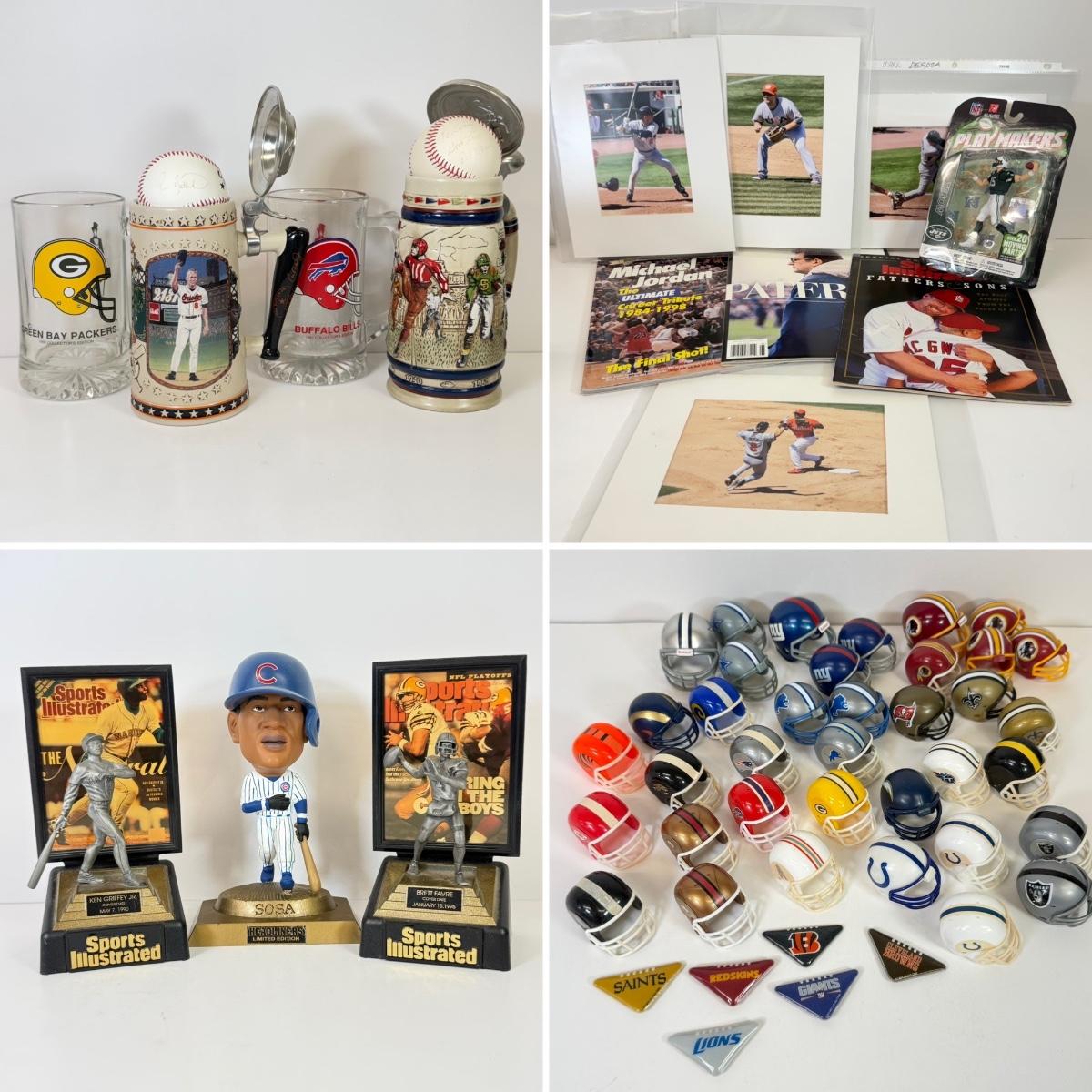 LOT 65: Sports Memorabilia Collection: Slim Jim Glass Mugs, Avon Stein, Riddell Mini Helmets & More