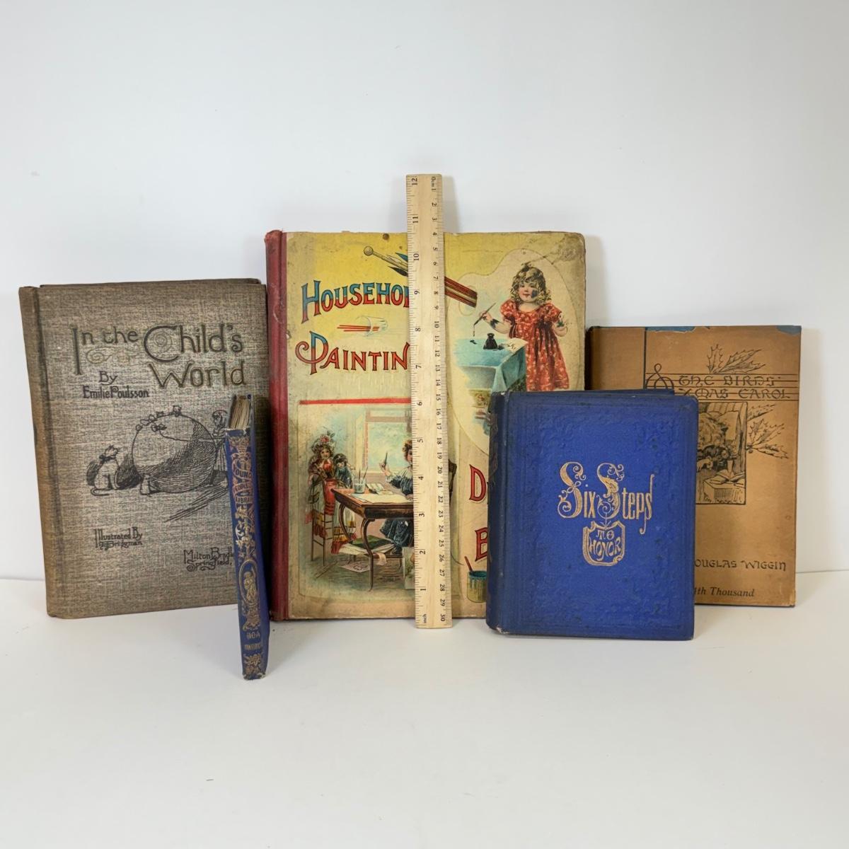 LOT 98: Antique Books: In the Child's World, Household Painting, Six Steps to Honor & More