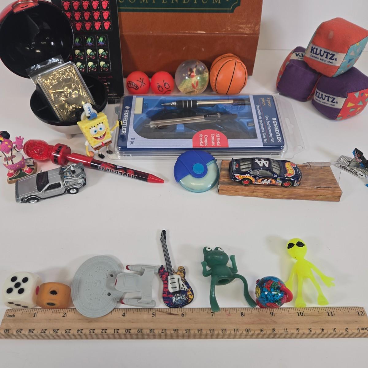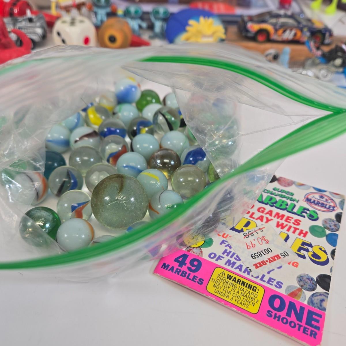 LOT 133: Ultimate Dice & Card Game Compendium, Pokémon 23k Gold Plated Trading Card, Unpunched Sheet of Official Magic: The Gathering Tokens and Counters, Klutz Juggling Balls, Glass Marbles, and More