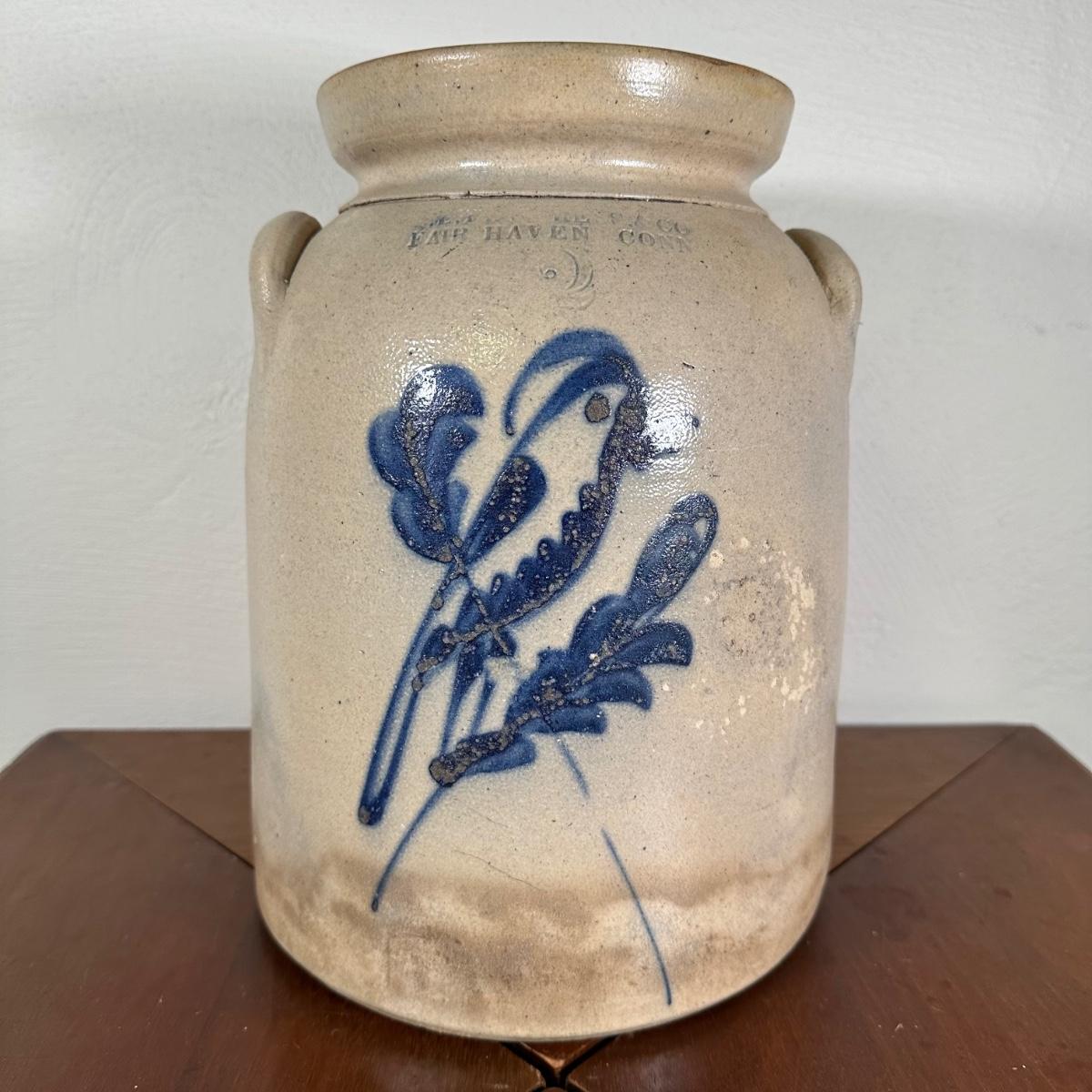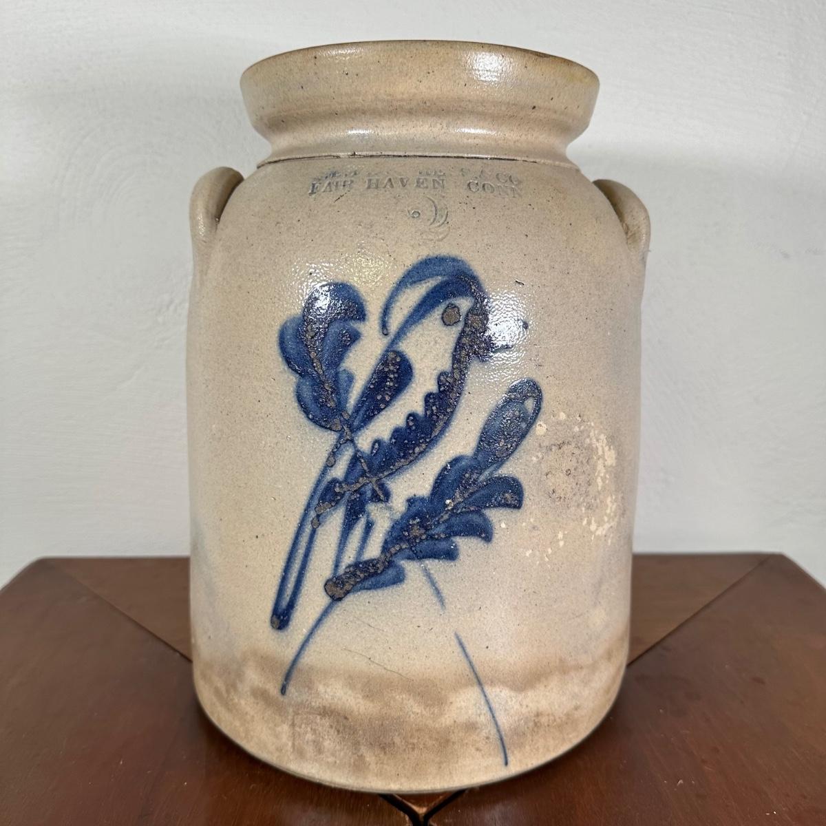LOT 119B: Antique S. L. Pewtress & co. Stoneware Crock Cobalt Bird Motif