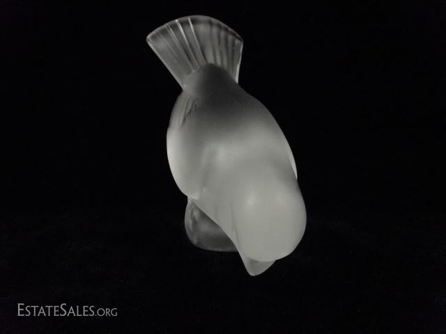 LOT 11A: LALIQUE CRYSTAL SPARROW, "MOINEAU HARDI" WITH HEAD DOWN, ETCHED LALIQUE MARK, 5" X 4", #1 OF TWO AVAILABLE