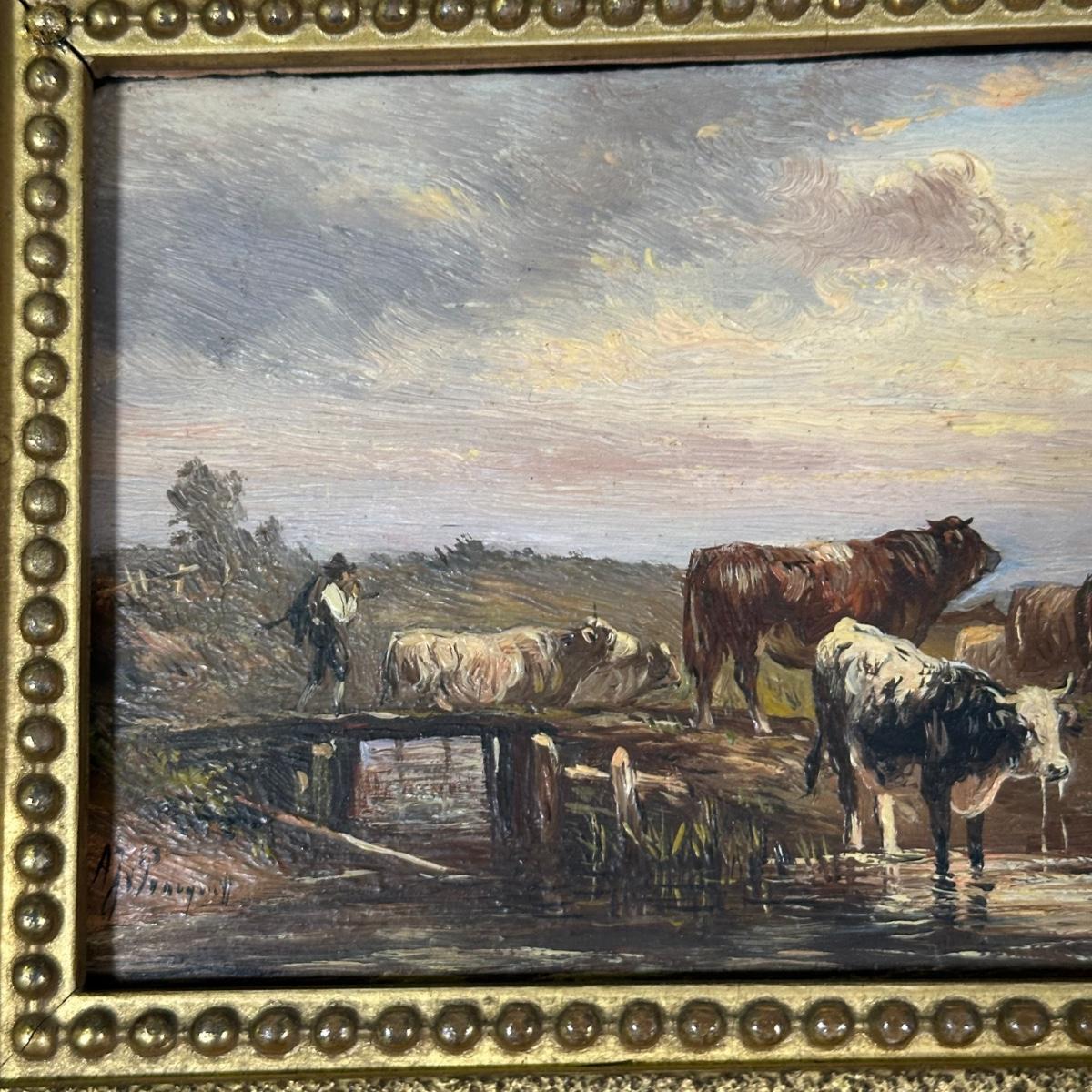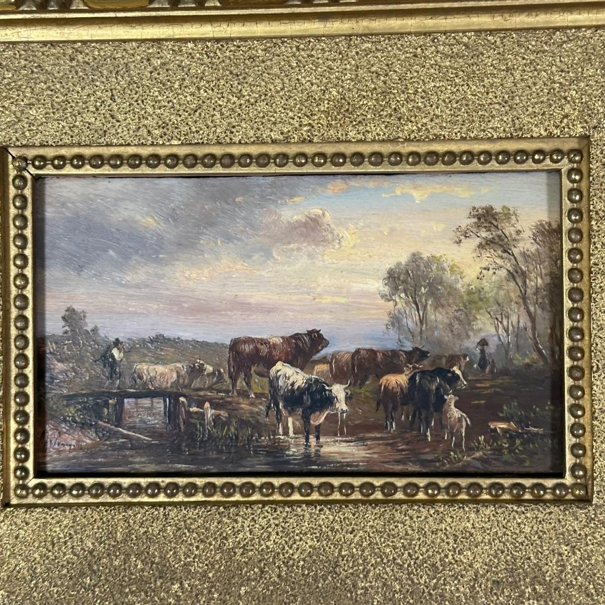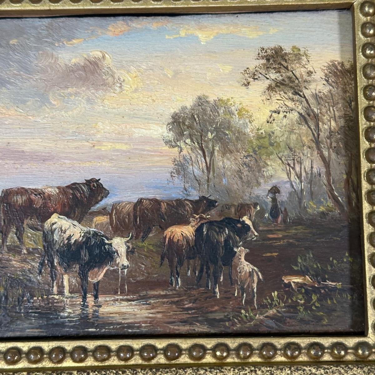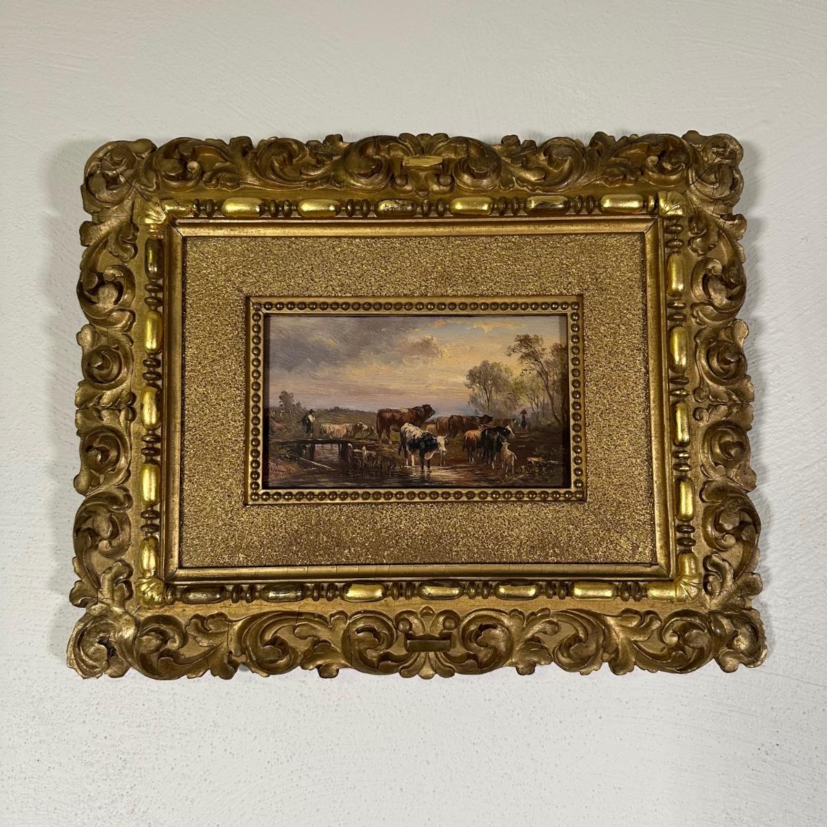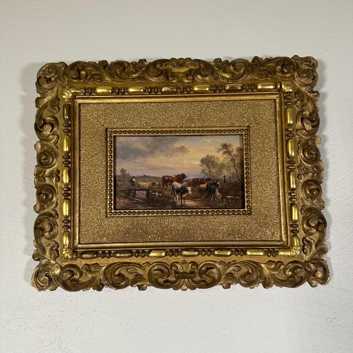 LOT 11B: Albert Jurandus Van Prooyen, (Dutch 1834-1898) Cattle Watering Framed Original Oil Painting