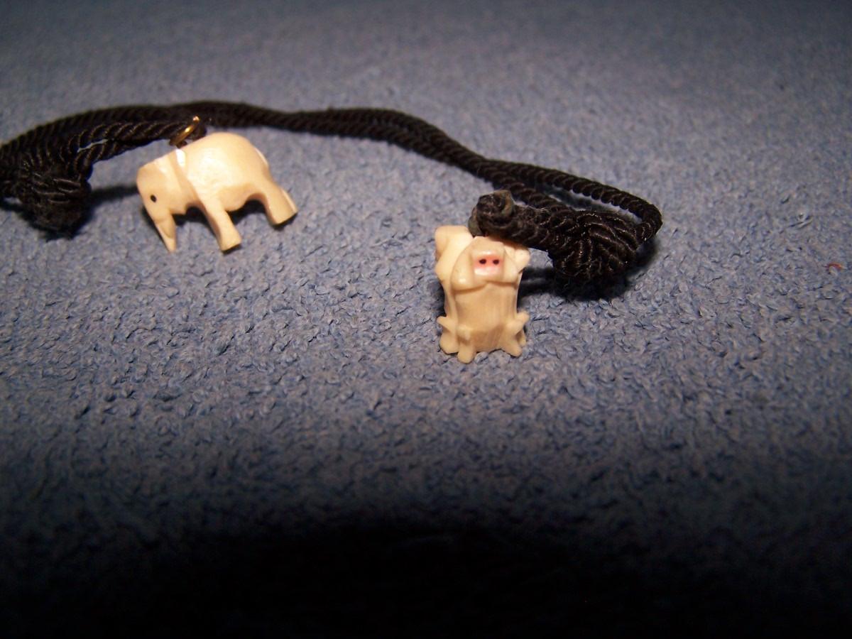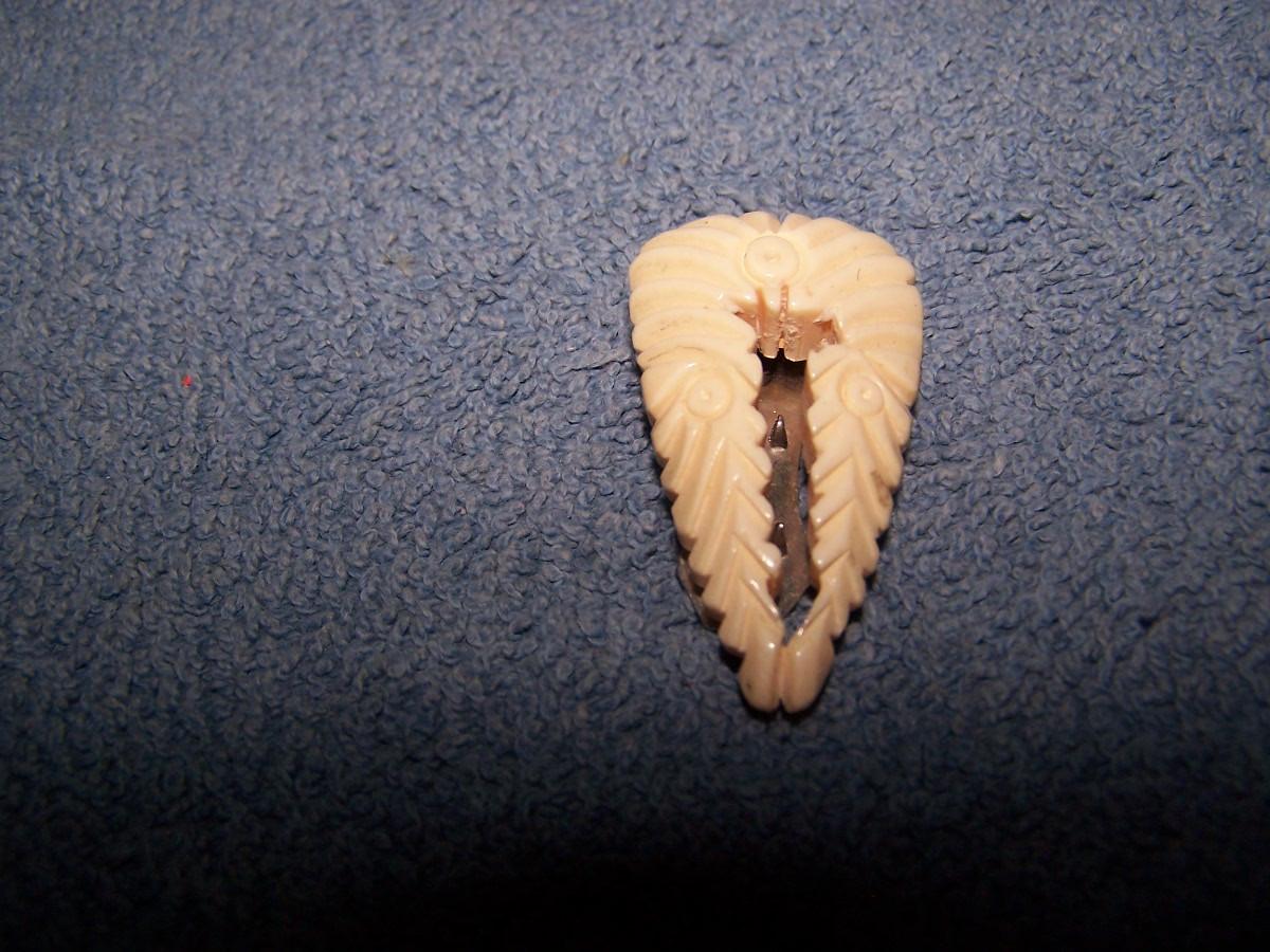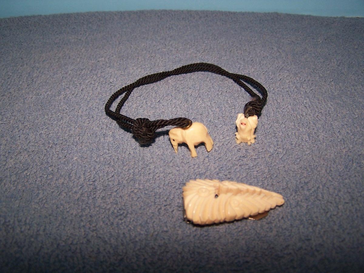 WONDERFUL VINTAGE CARVED CHARMS AND CLIP CLIP IS 7/8 X 1 3/4 INCHES SLIGHT WEAR