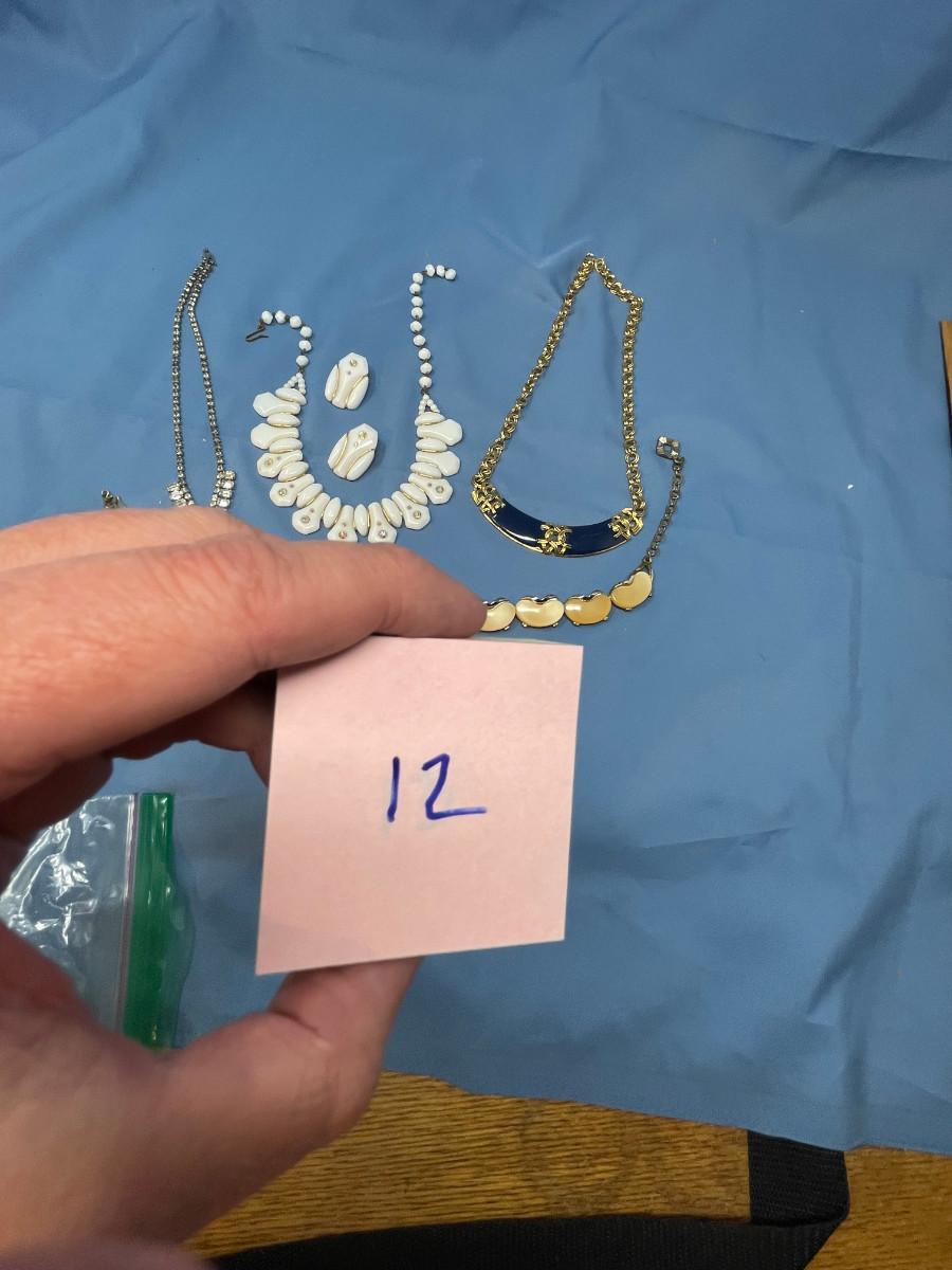 8. Sizes are approximate, you can estimate as our lot number signs are 3.5" long. Also we use an 18" & 36" measuring stick.  We try on certain things to do actual measurements. No guarantees on actual sizes, we try our best!