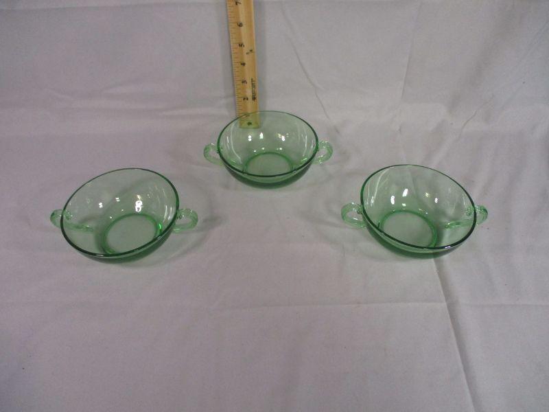 Lot 12 - (3) Uranium/Vaseline Glass Soup Bowls
