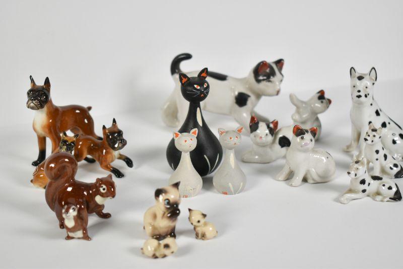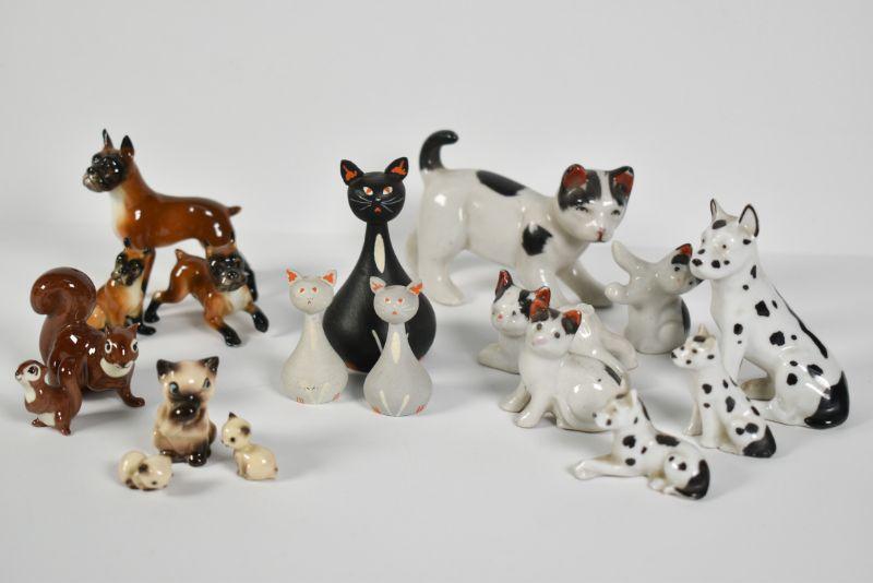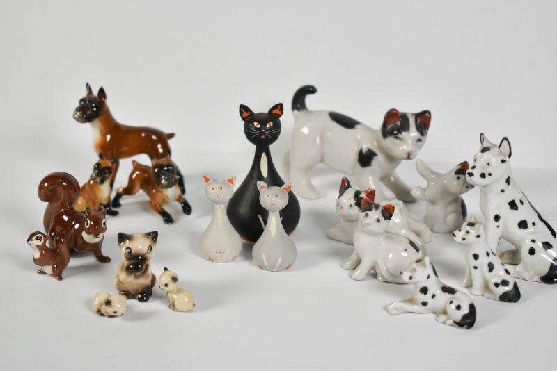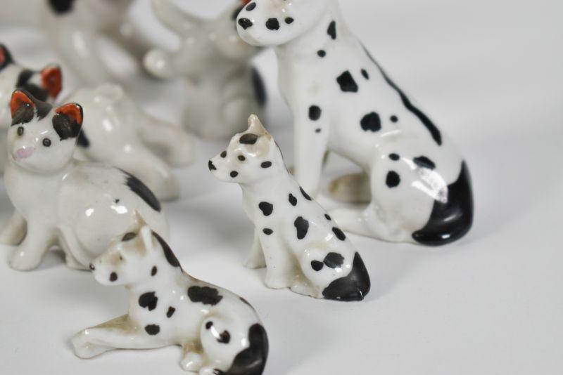 Tiny, vintage porcelain animals. Includes dogs, cats, and squirrels. **Please read Terms and Conditions before placing a bid. Pick up is Sunday, December 22 from 11am to 3pm or Monday, December 23 from 4pm-7pm in Mantua, NJ. All sales are final. All sales are as is, where is. Please review all photos. Props are not included. Measurements are approximate.