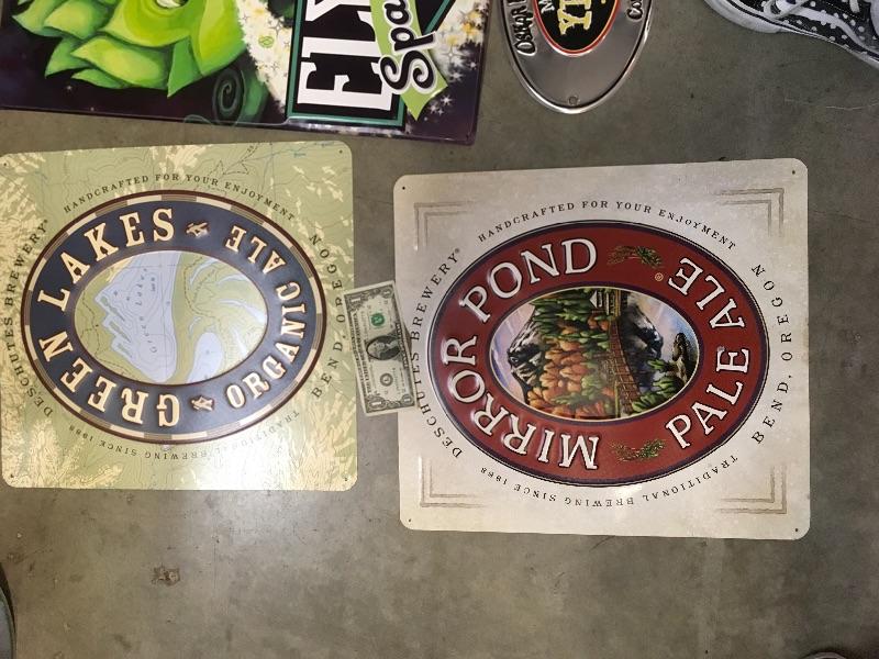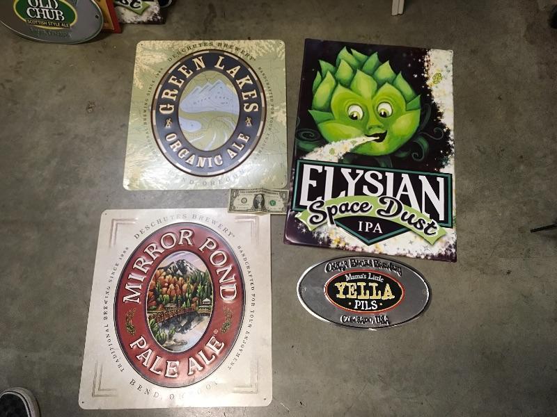 Lot 12 the 4 signs are all in new or like new condition. They include Green Lakes, Elysian, Yella, and Mirror Pond. This is a great starter sign collection.