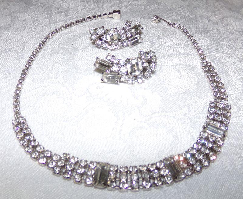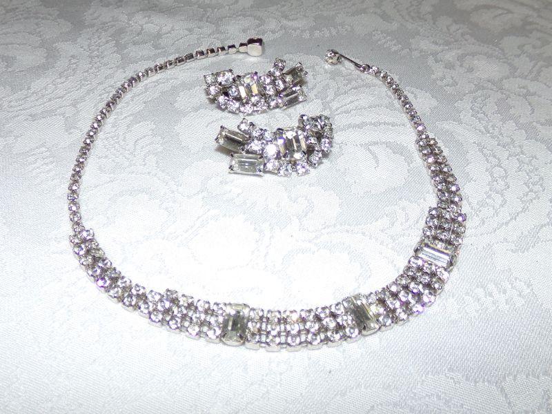 RHINESTONE NECKLACE AND CLIP ON EARRINGS