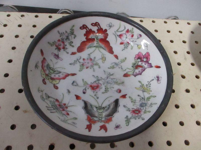 JAPANESE Eurasia Ltd. Porcelain Ware pewter encased low bowl, A.C.F. Porcelain Ware Plate Dish Decorated In Hong Kong