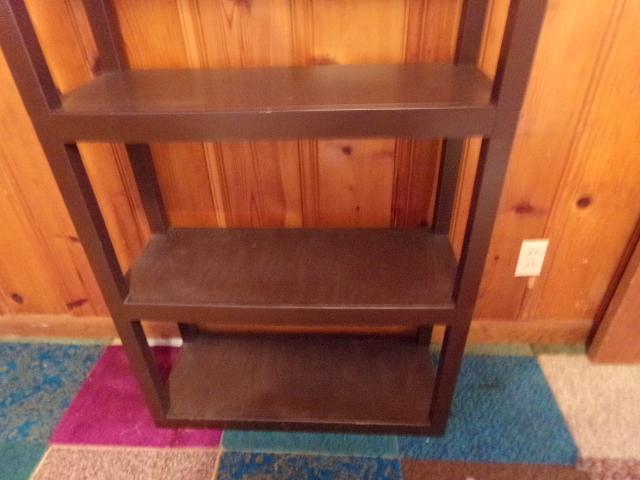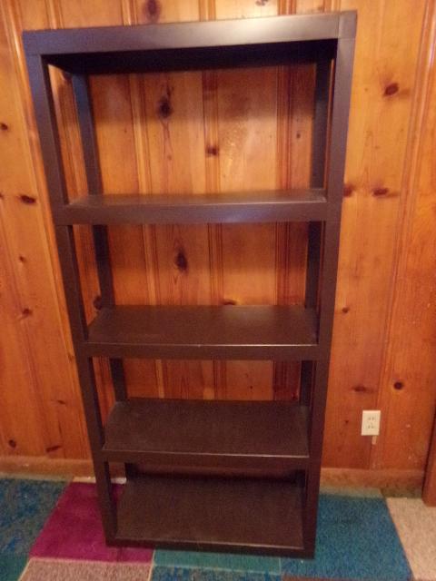 DARK BROWN PLASTIC SHELF WITH 5 SHELVES.