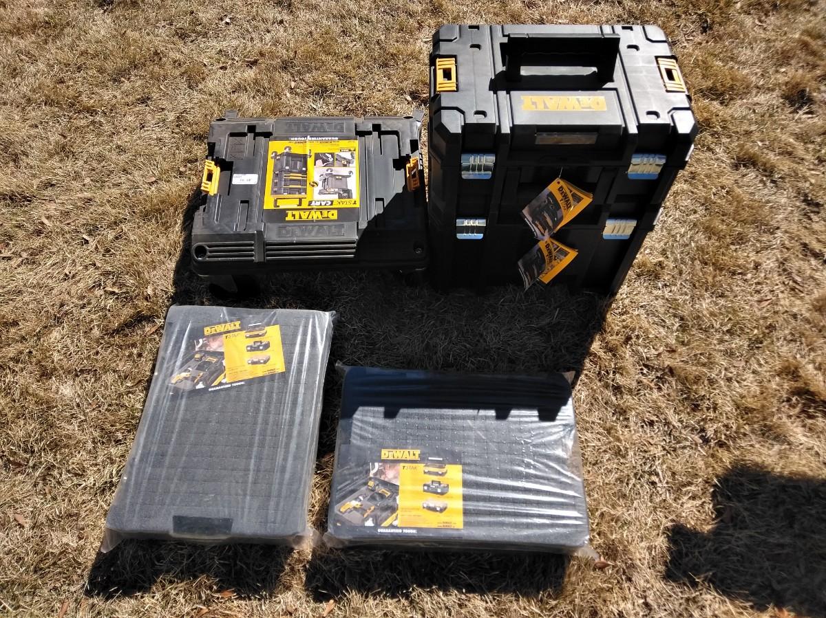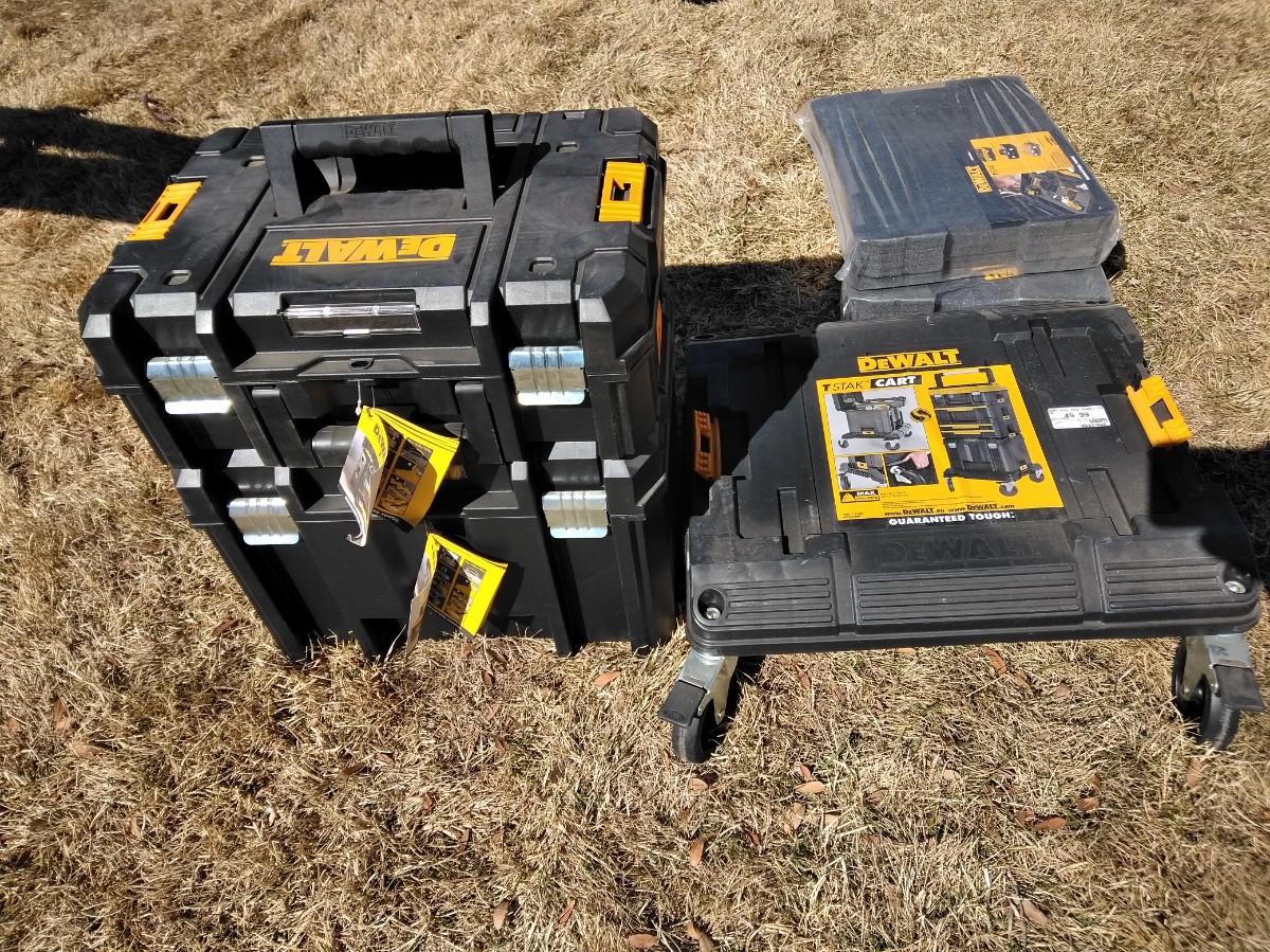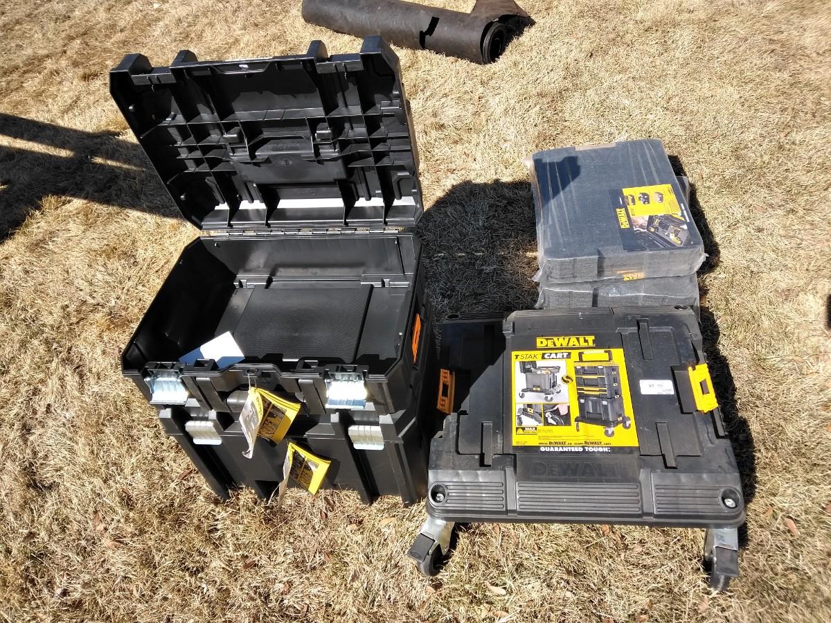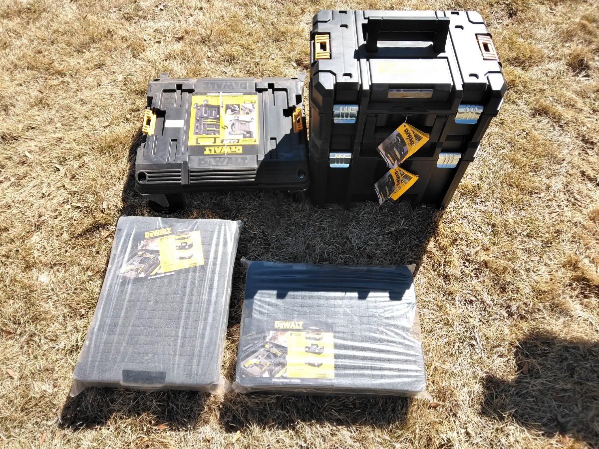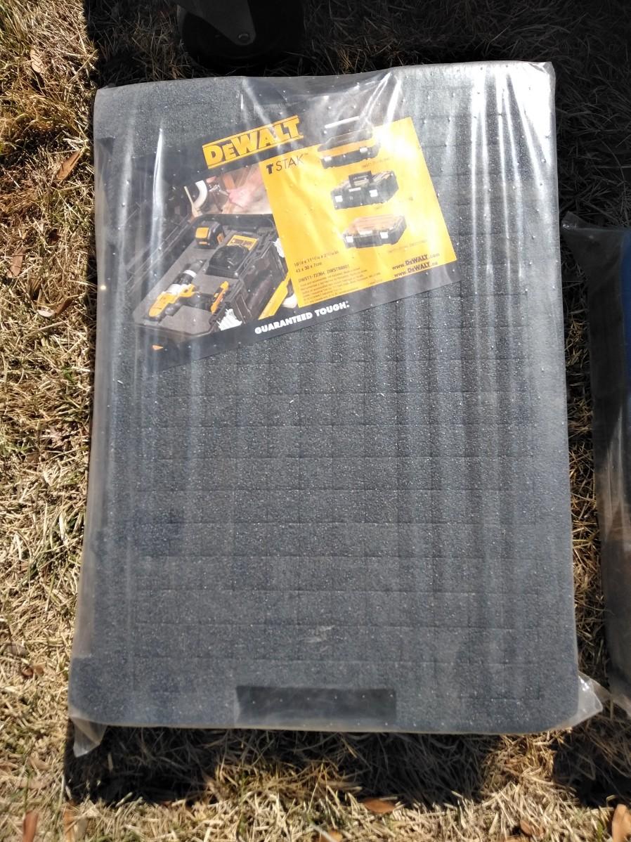DEWALT T STAK CART, WITH TOOLBOX, AND TWO PACKAGES OF TOOL FOAM