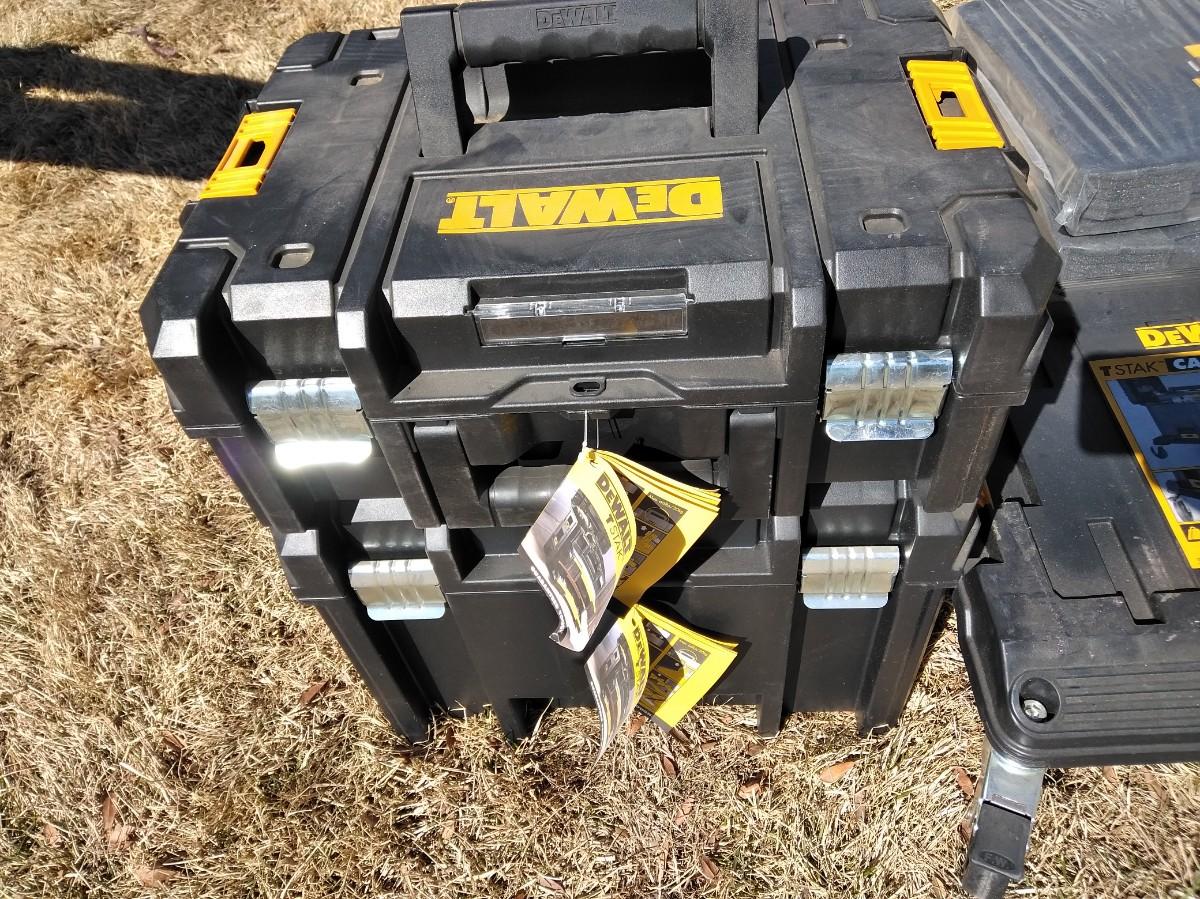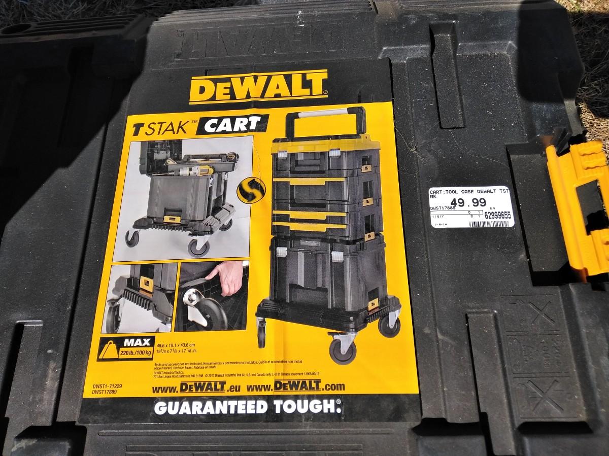 LOT 12 DEWALT T STAK BOX WITH CART AND TOOL FOAM