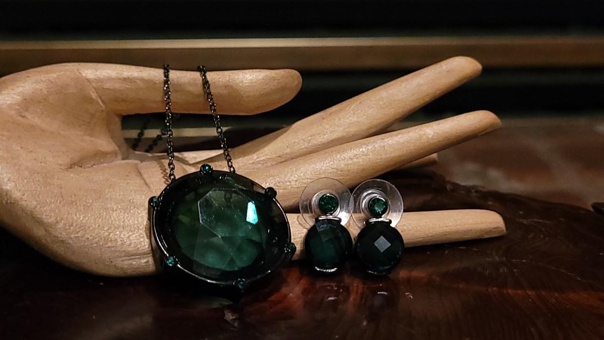 Lot 12: Liz & Co. Green Jewel Necklace & Matching Earrings
